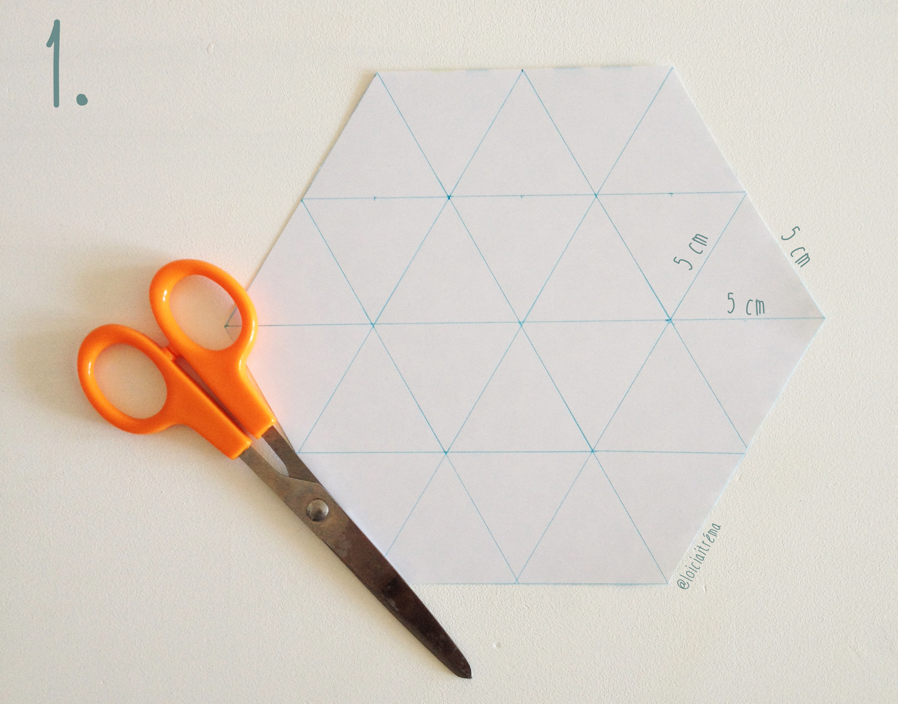 Étape 1 : Réaliser le tracé en forme de pentagone composé de 24 triangles isocèles de 5 cm de côté.
