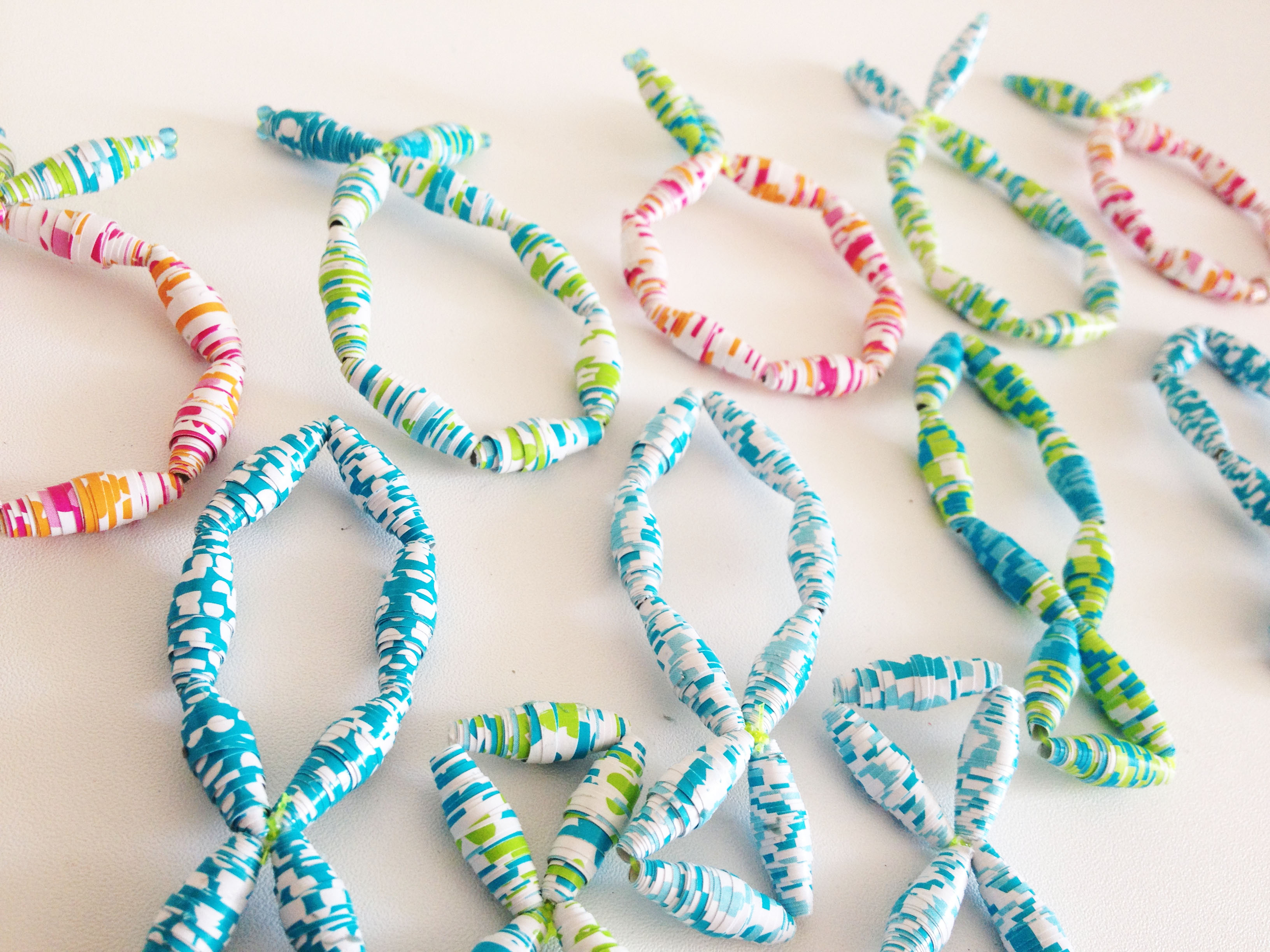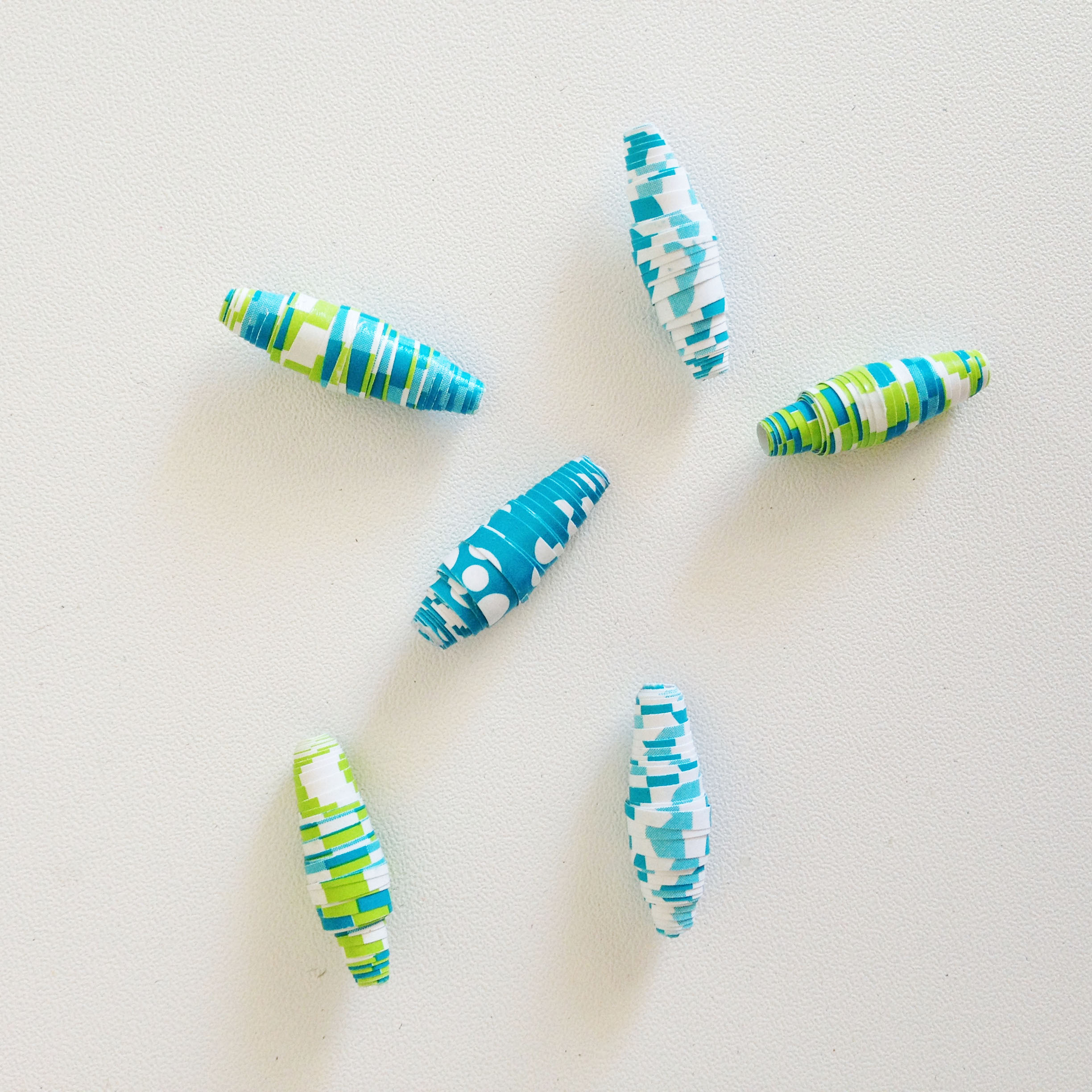 Vos formes sont alors prêtes ! Pour terminer la guirlande, placez vos formes sur un fil de coton en les espacant de façon régulière. Vous venez alors de réaliser votre guirlande en perles de papier !