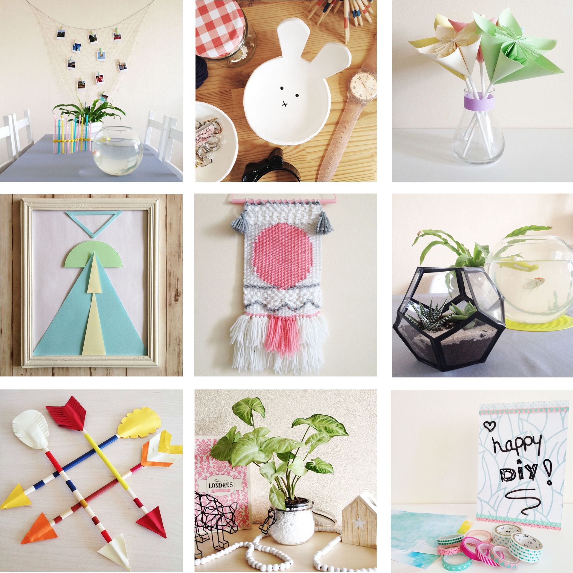 Porte photos – Coupelle lapin – Fleur origami – Cadre pastel – Tissage mural