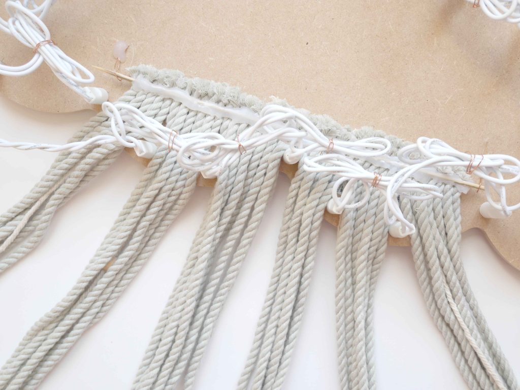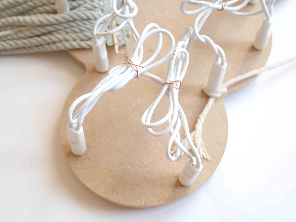 - Faites ensuite passer les différents fils à travers les câbles de la guirlande.