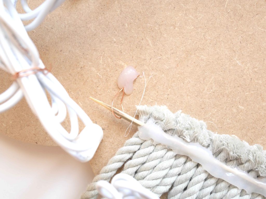 - Ajoutez quelques perles en bois sur les morceaux souhaités.