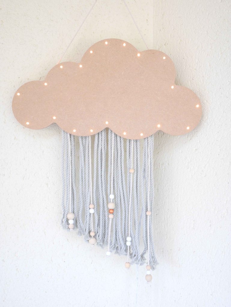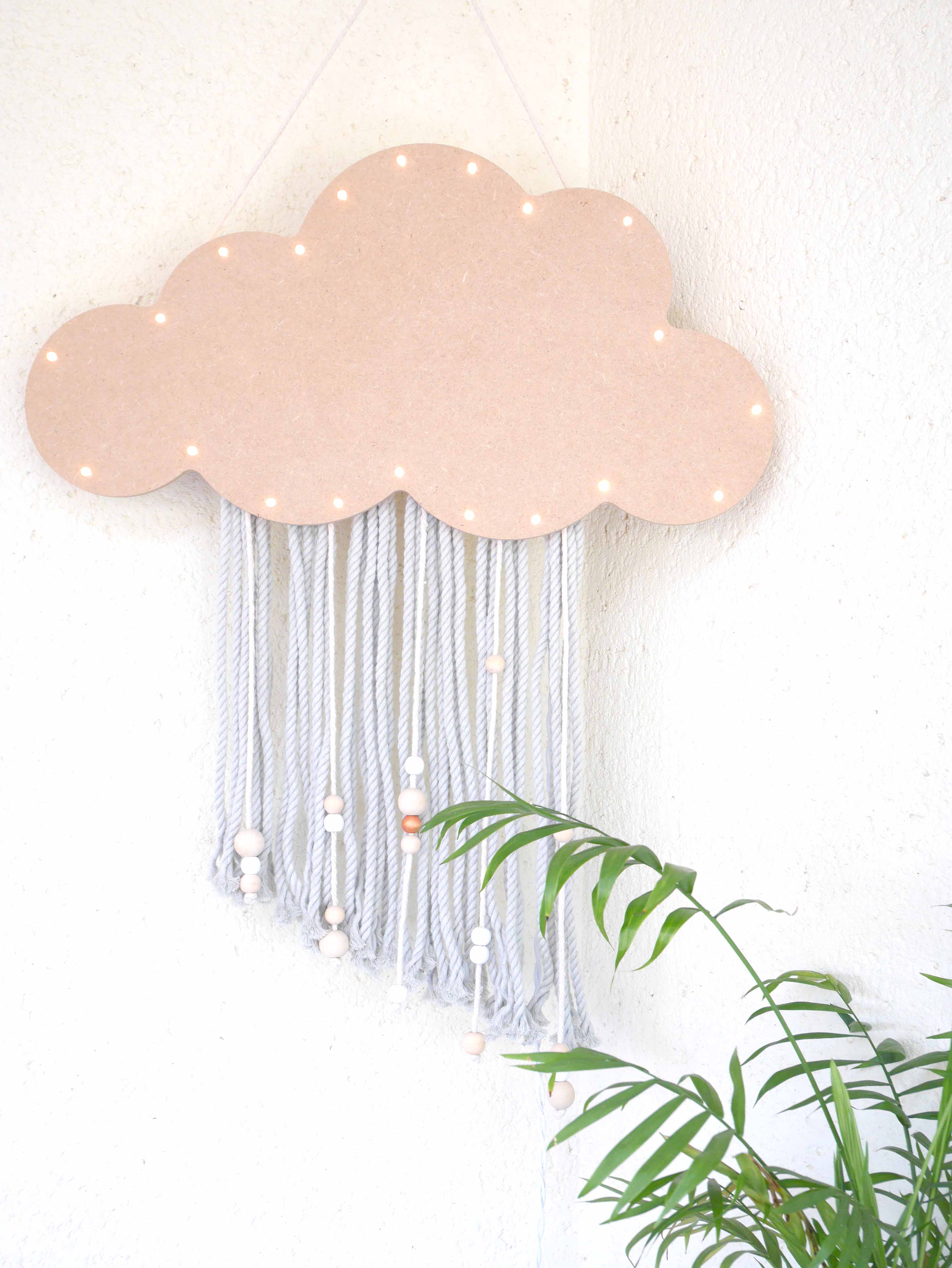 Lors de la création de cette suspension, j’ai opté pour une version « brute » en laissant le nuage nude et en choisissant des couleurs douces. Vous pouvez, bien évidemment, peindre le support et ajouter des touches de couleurs au niveau des franges. C’est maintenant à vous de vous approprier ce petit tutoriel et de le customiser selon vos envies !