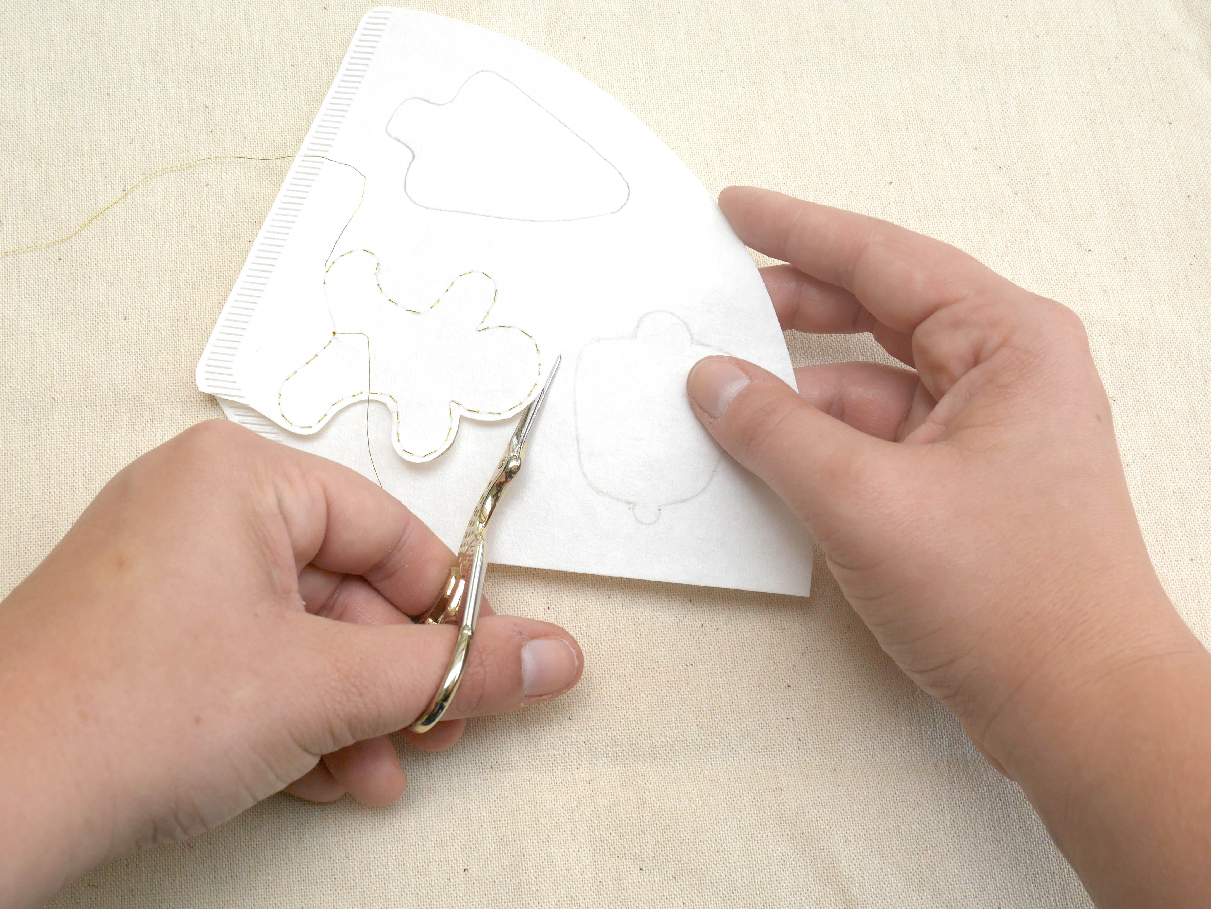 - Découpez le contour de votre forme en laissant quelques millimètres de bordure (afin d’éviter que le fil ne se défasse).