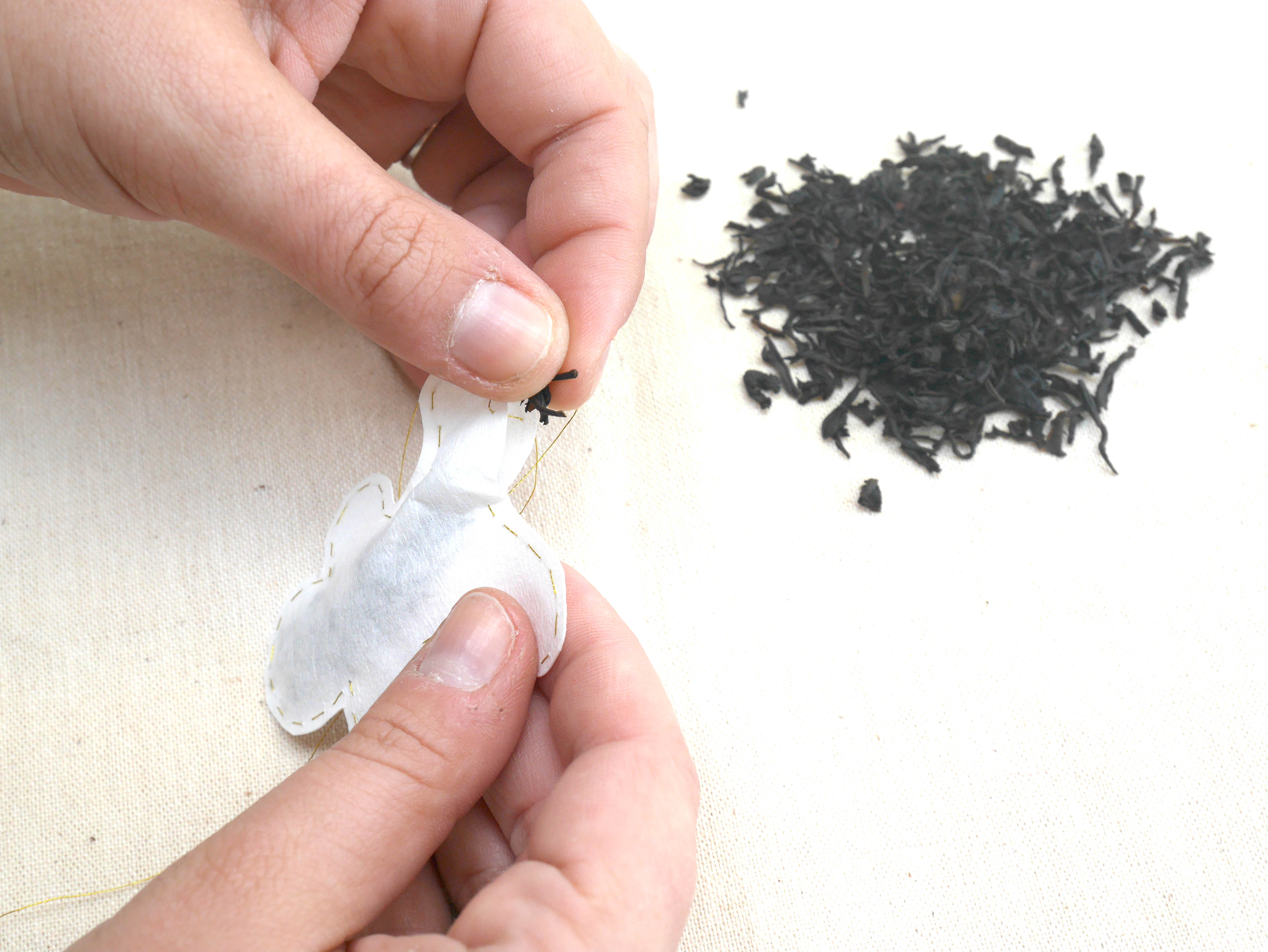 - Remplissez les différents sachets avec votre thé préféré. Attention à ne pas trop remplir le sachet, car cela vous facilitera la couture de fermeture que vous allez faire par la suite.
