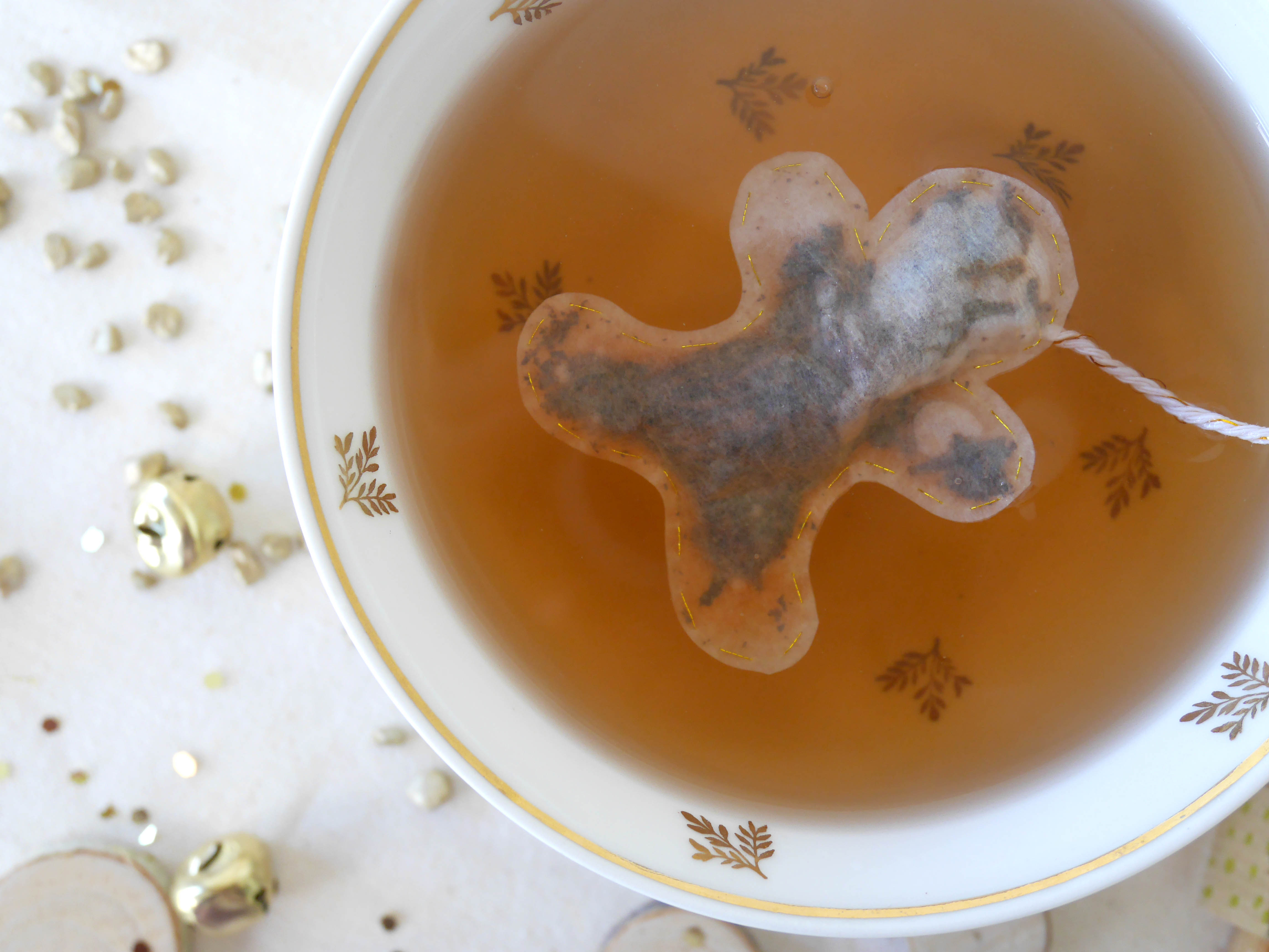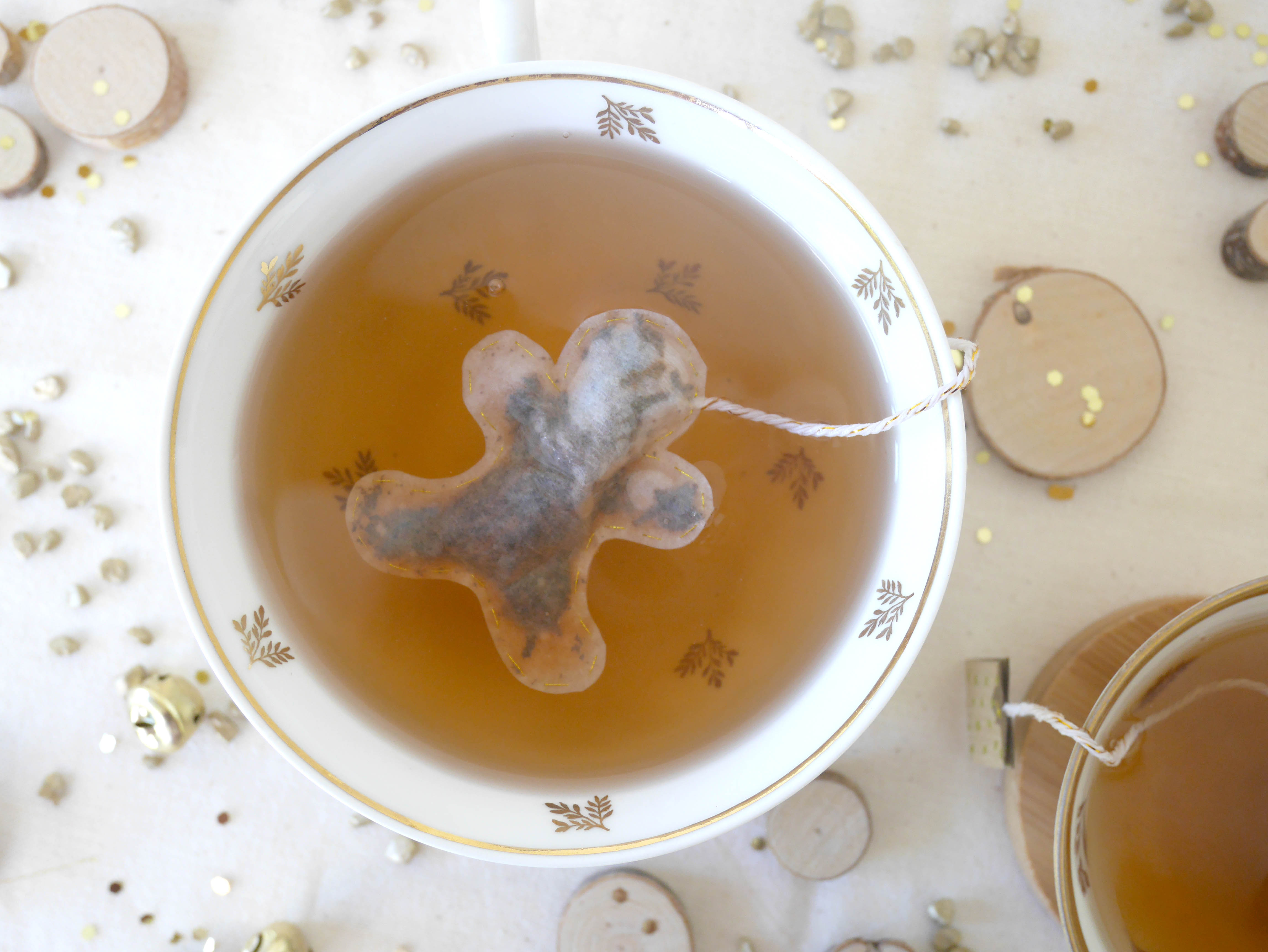 - Enfin, au bout de votre fil de coton, cousez ou collez une petite étiquette pour finaliser votre sachet de thé de Noël !