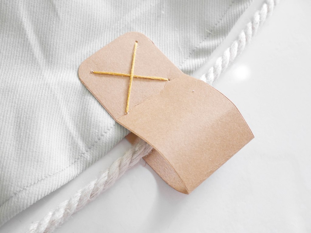 - Passez ensuite la cordelette dans chaque passant et faites un nœud !