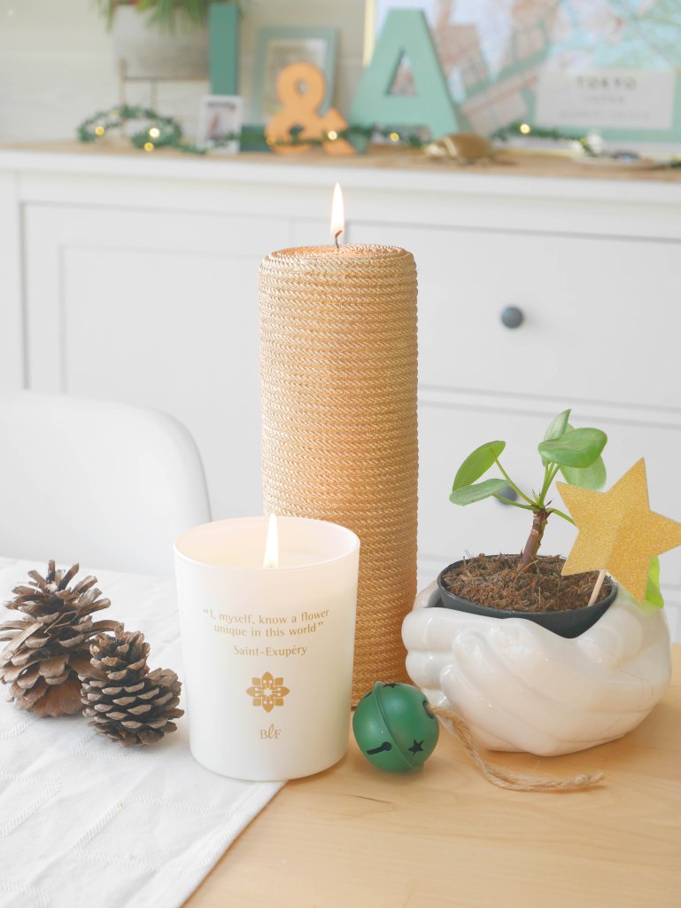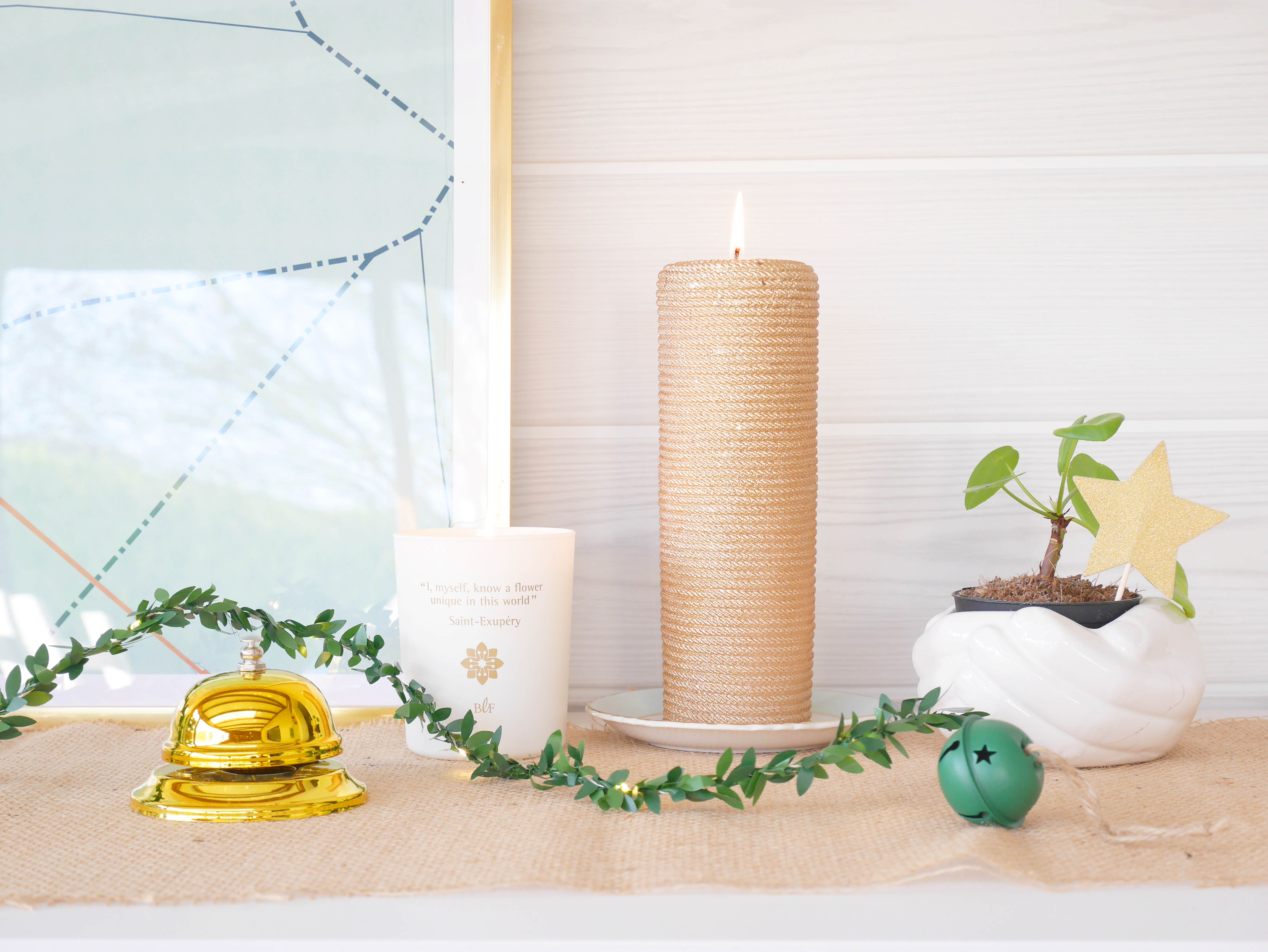 Je pense qu’après les carnets et les pin’s, les bougies sont les objets que j’affectionne le plus : Toujours une petite bougie allumée quelque part, à tout moment, à toute saison. Et les fêtes de fin d’année sont le prétexte parfait pour habiller sa déco de mille lumières !