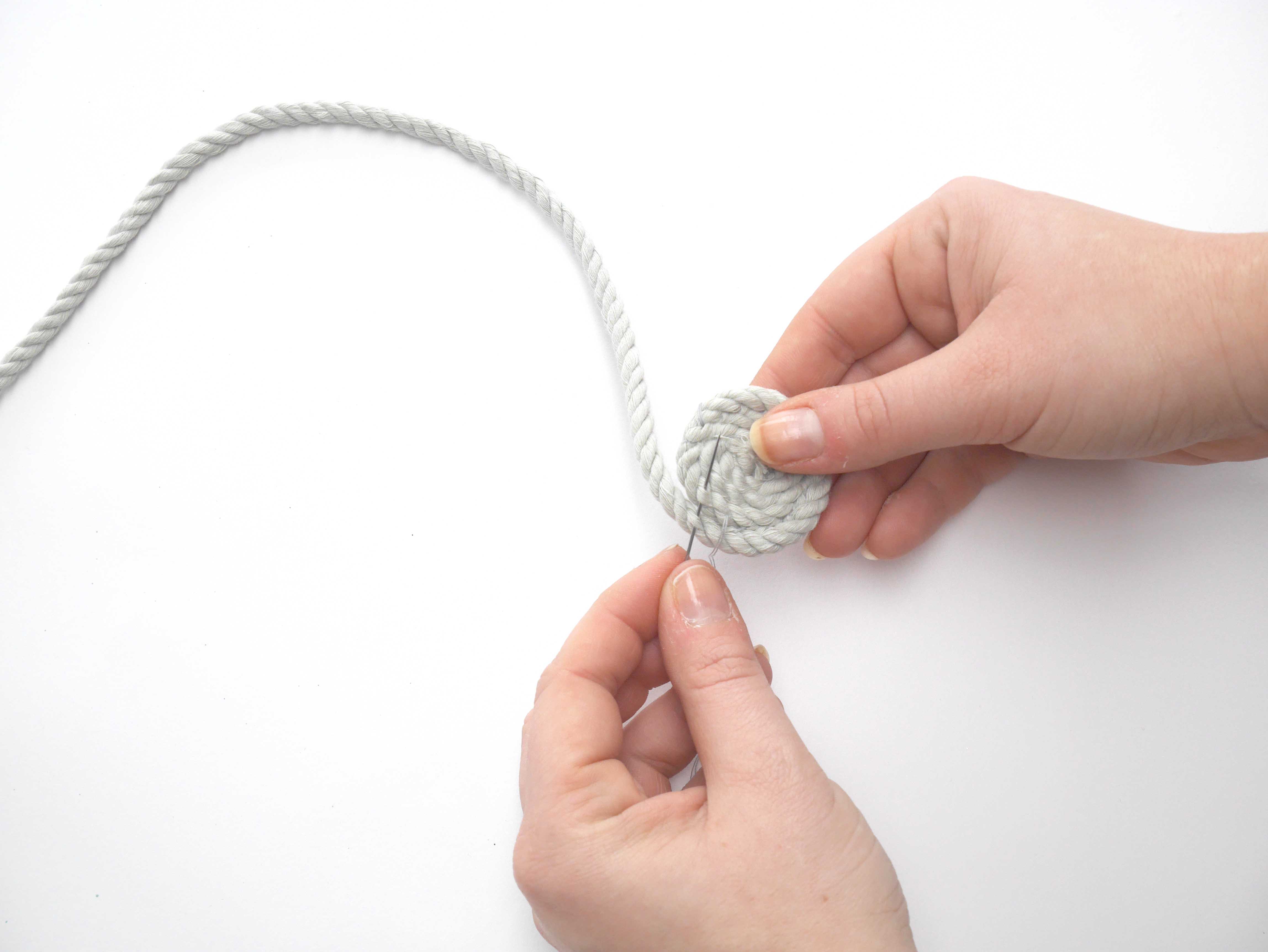 - À chaque tour, sécurisez en cousant la corde sur celle présente à côté.