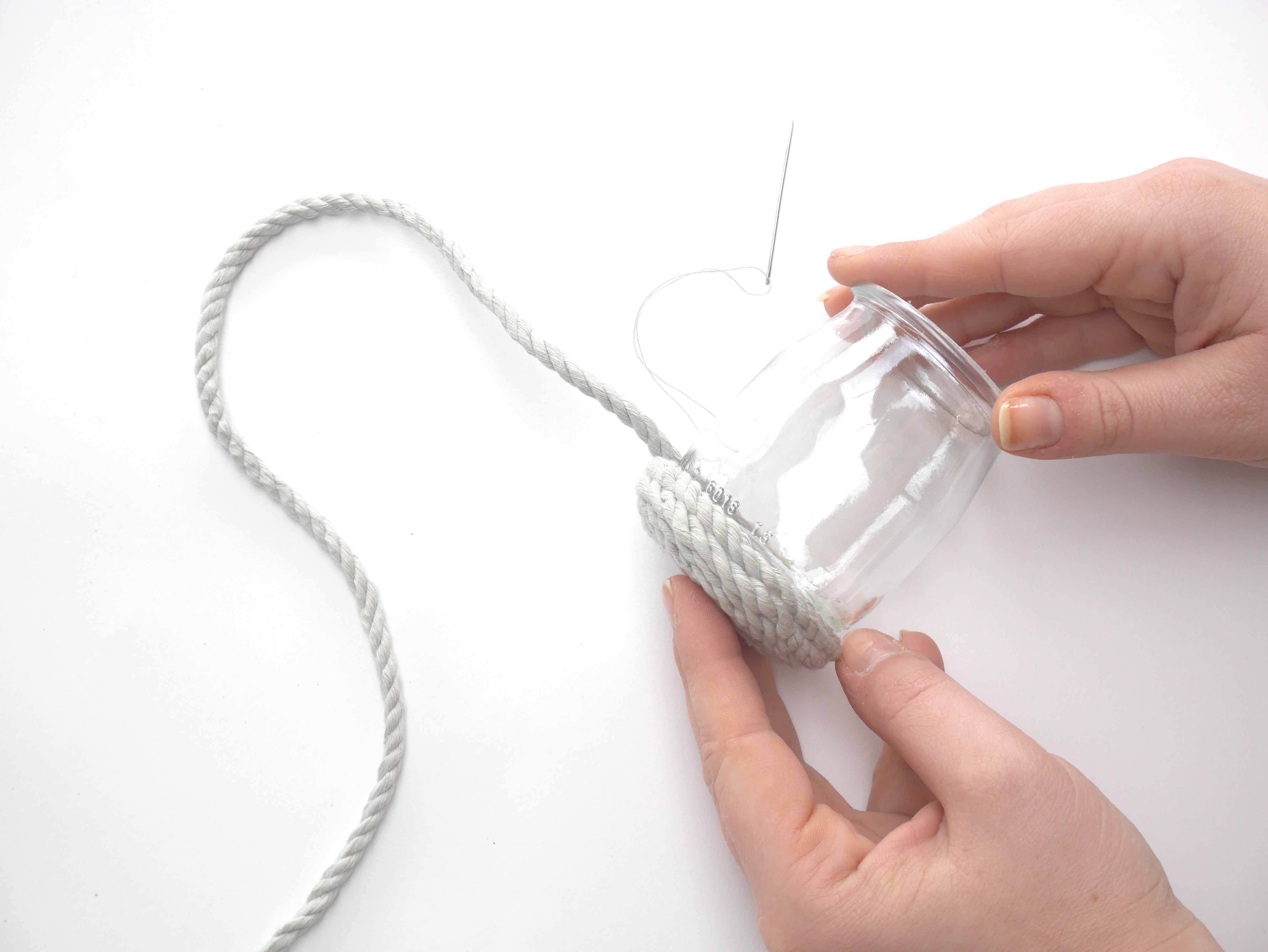 - Ensuite, enroulez simplement la corde sur elle-même afin de réaliser un cercle de la même taille que la largeur de votre pot.