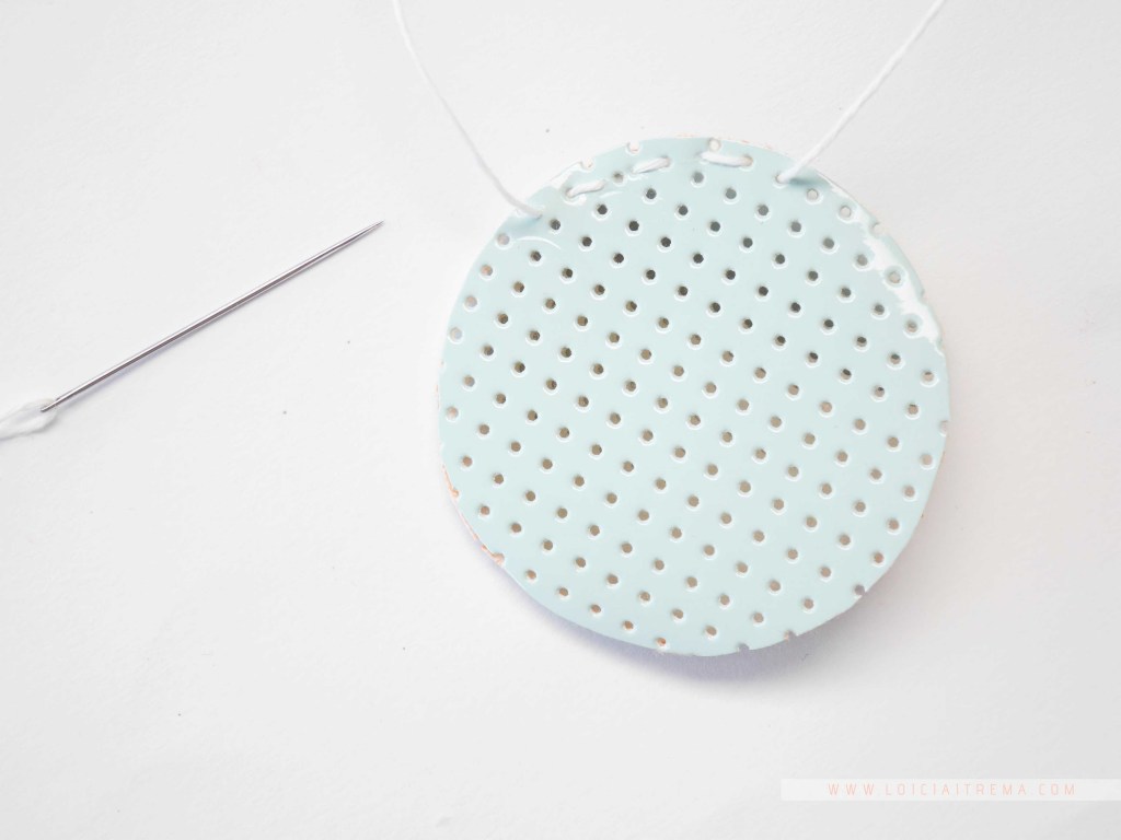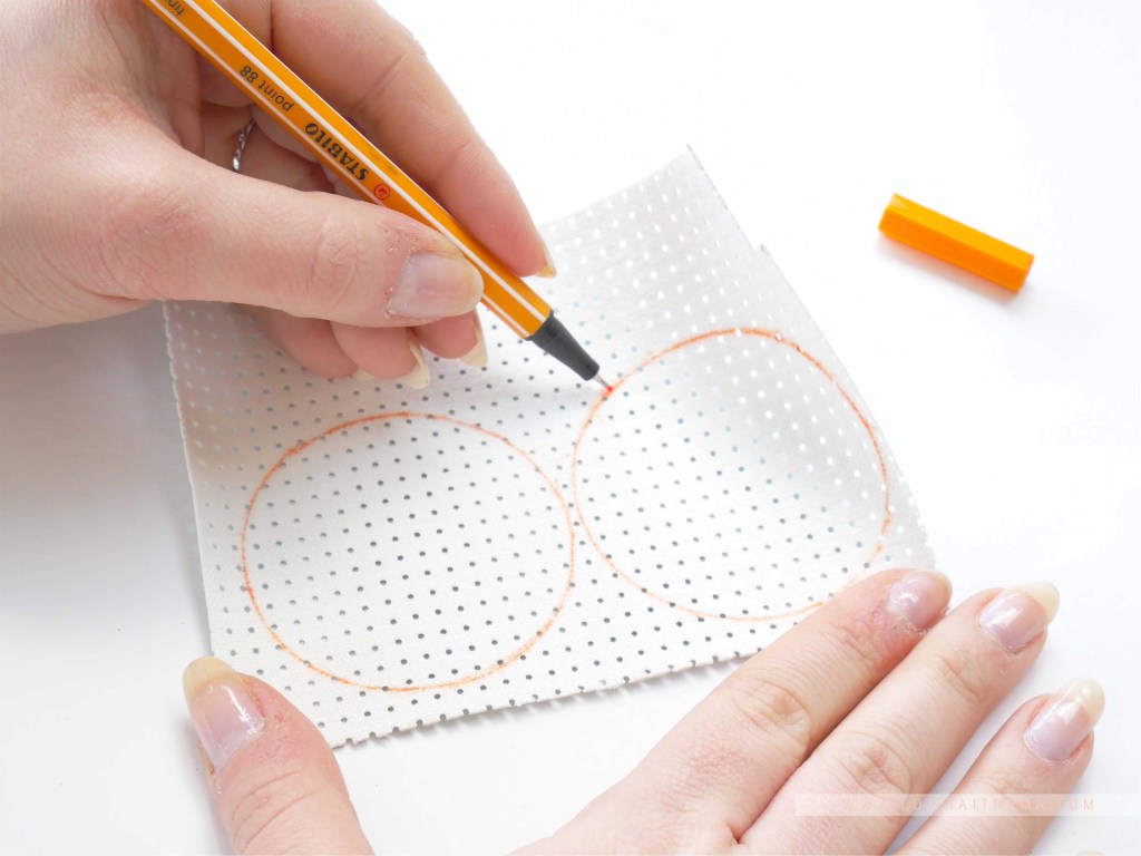 2. Dans votre tissu vinyle perforé, découpez 2 cercles identiques de 5 à 6 cm de diamètre.