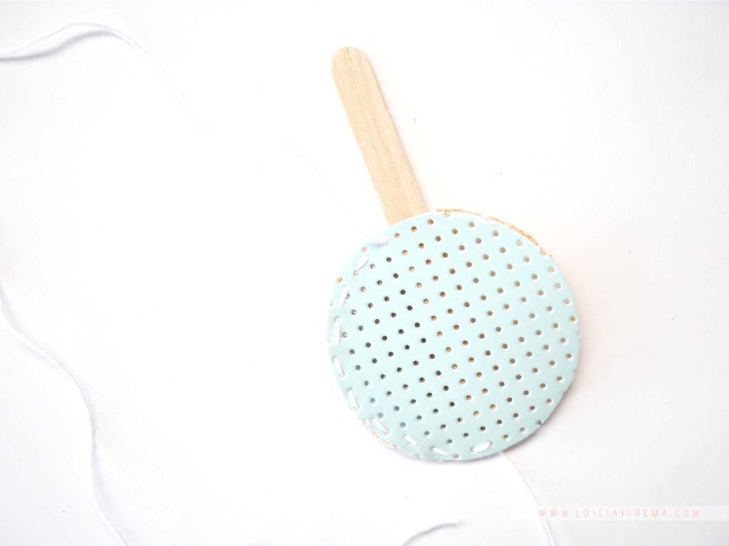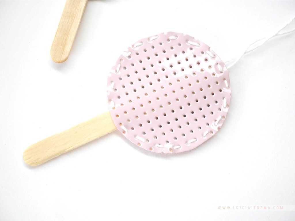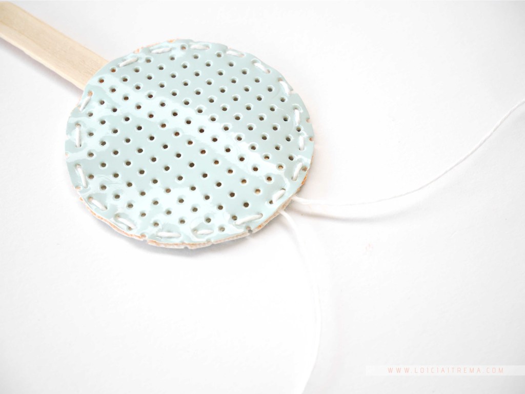 5. Une fois arrivé à la moitié du cercle, placez le bâtonnet de bois à l’intérieur des cercles et continuer de les sceller ensemble.