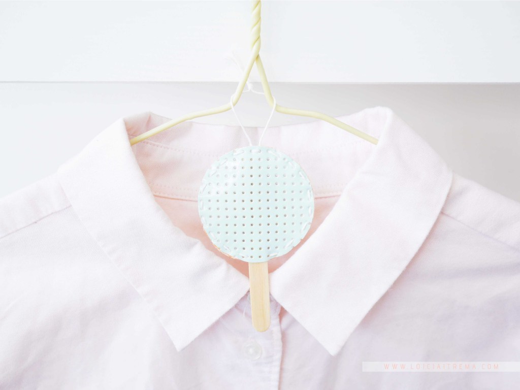 Lorsque votre petite « sucette » parfumée ne le sera plus, il vous suffira de déposer de nouvelles gouttes d’huile essentielle sur le bâtonnet pour réactiver son parfum et hop, on replace dans l’armoire, au milieu des vêtements !