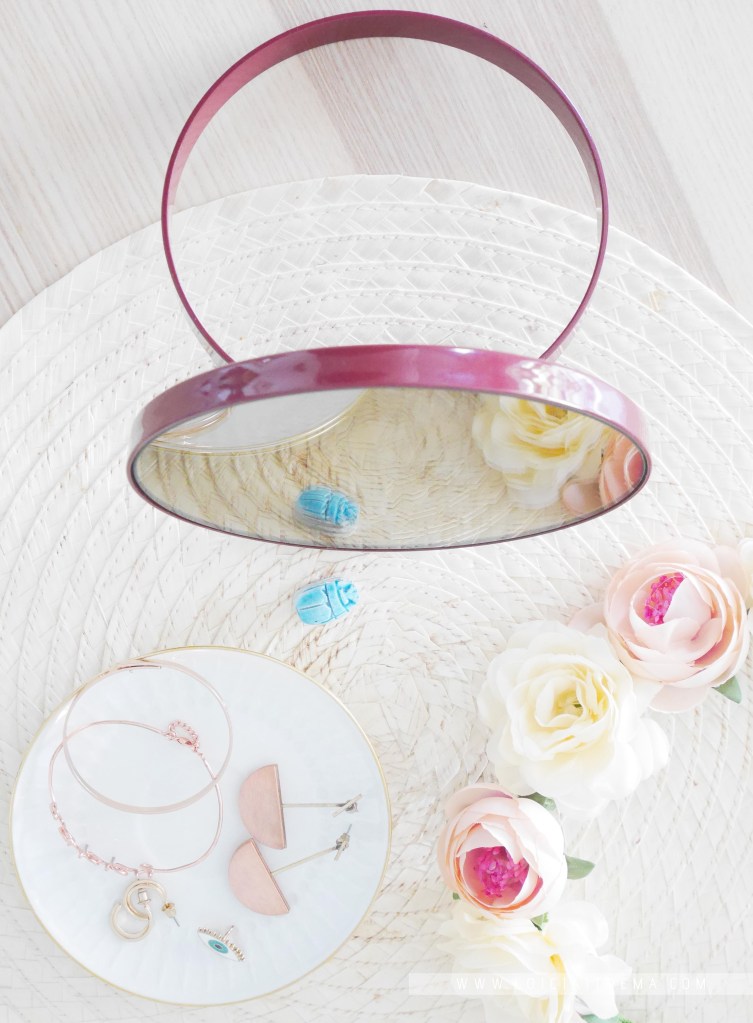 Concernant le miroir « ring », je suis vraiment agréablement surprise par la qualité +++ de l’objet. Il est très lourd et solide et son effet teinté rend l’ensemble très chic. (les photos sur le site sont trompeuses car le miroir est en réalité plus foncé qu’il n’y paraît). Très bon point également sur le conditionnement et le petit livret typé magazine qui accompagne l’objet.