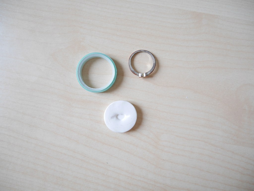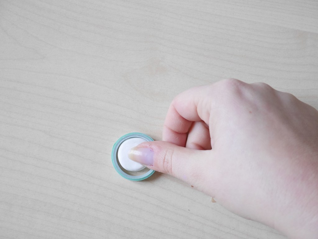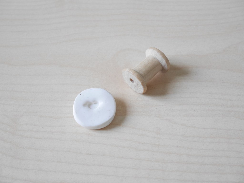 - Placez-la au centre du rouleau de masking tape, qui a ici exactement le même diamètre que mes bobines de fil.