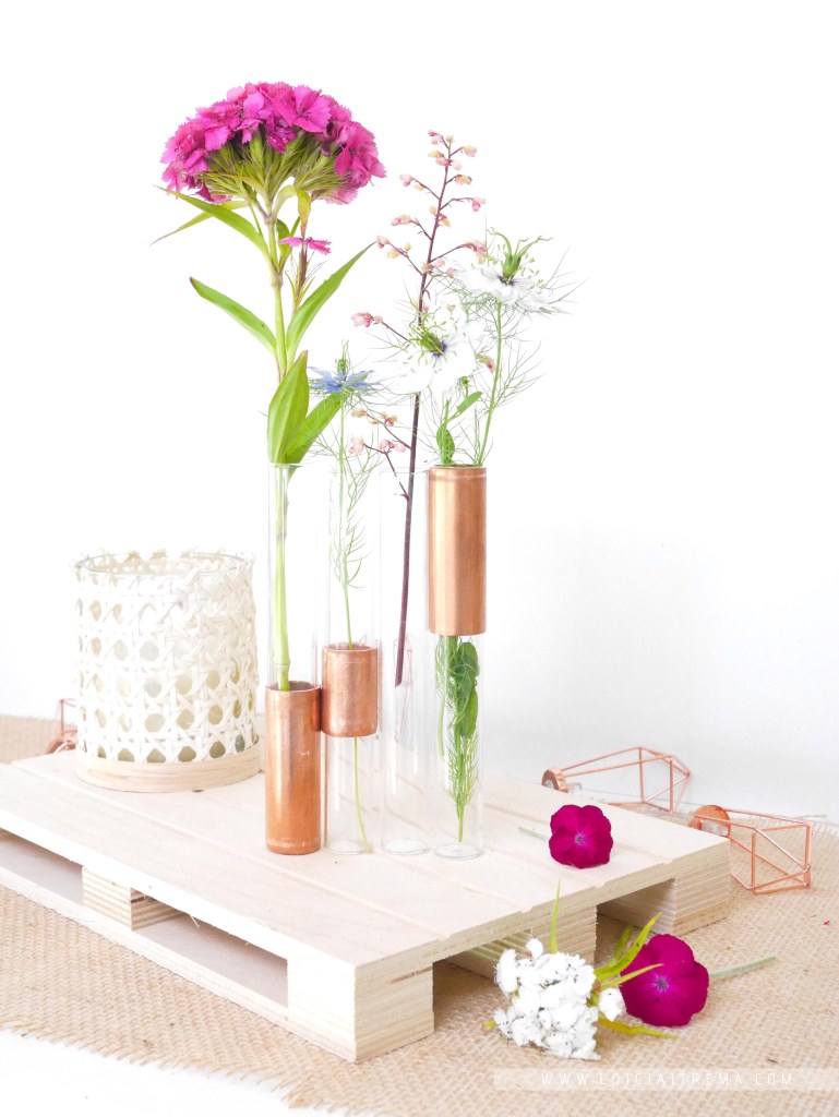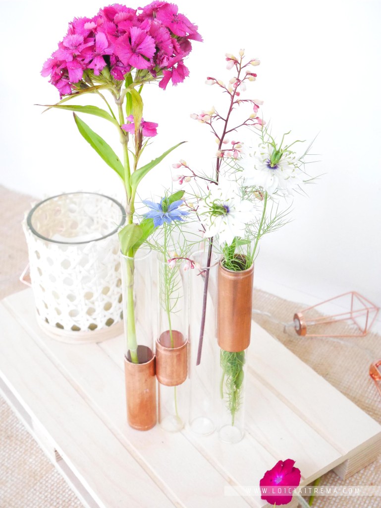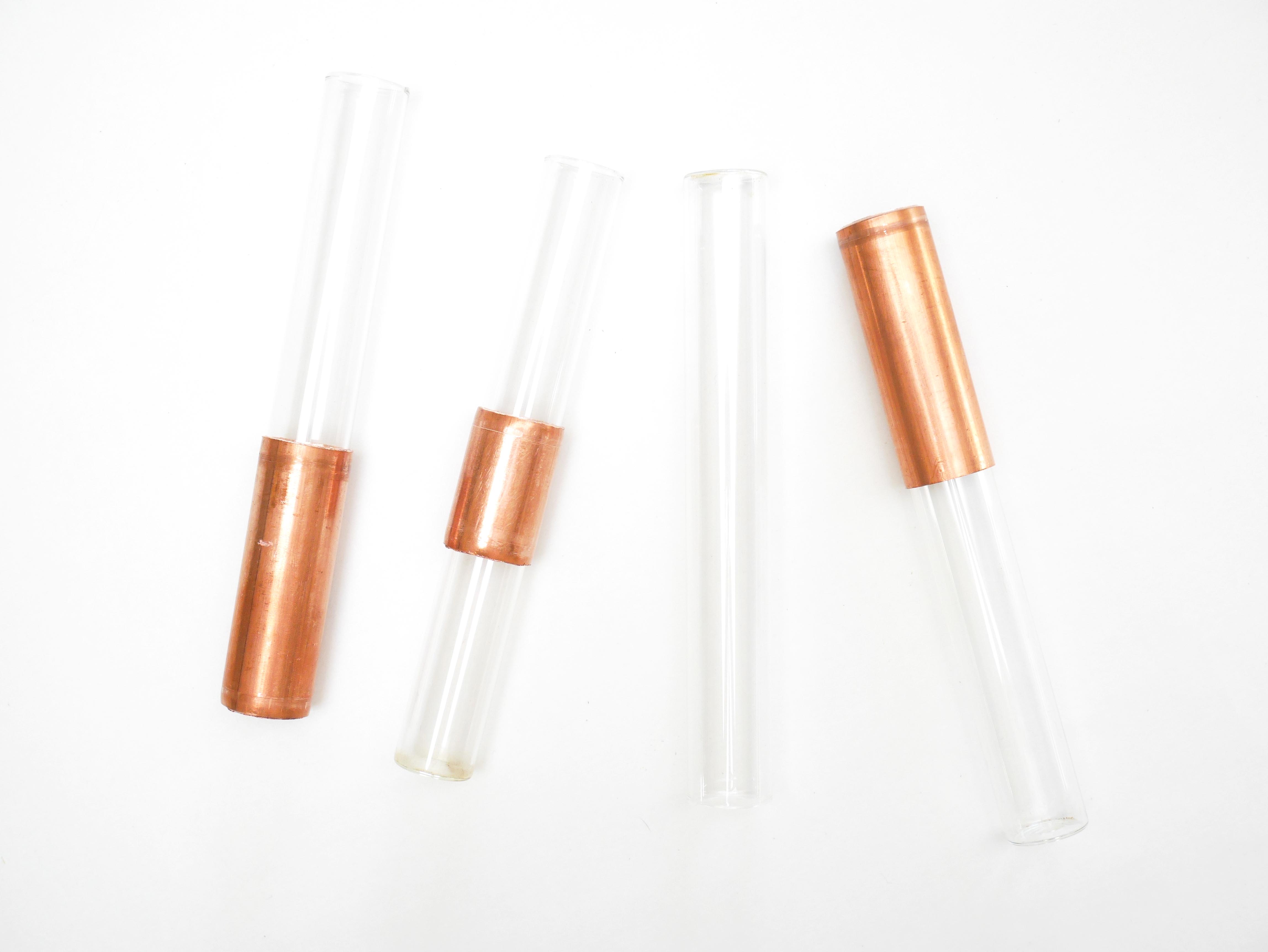 - Commencez par vérifier que les soliflores en verre peuvent s’insérer aisément dans le tube en cuivre.