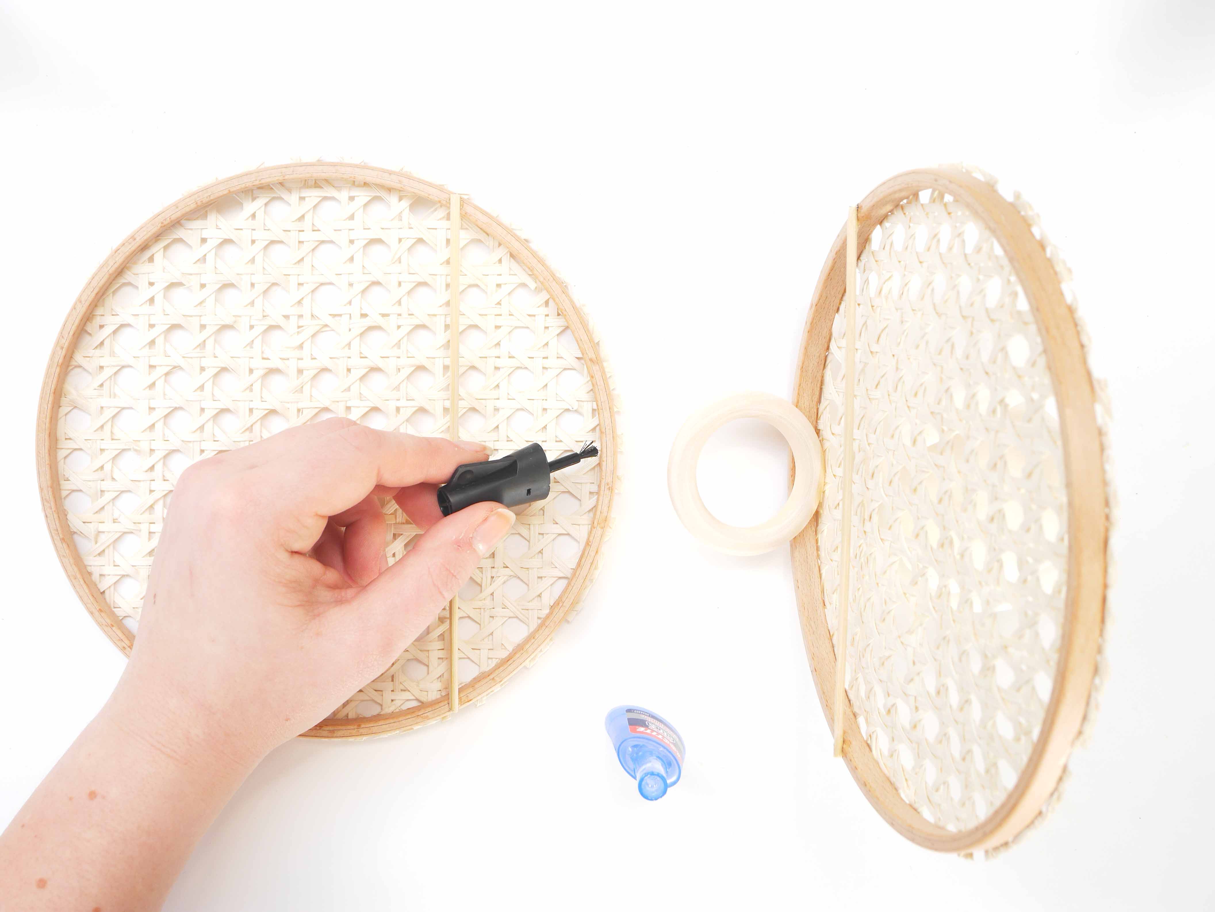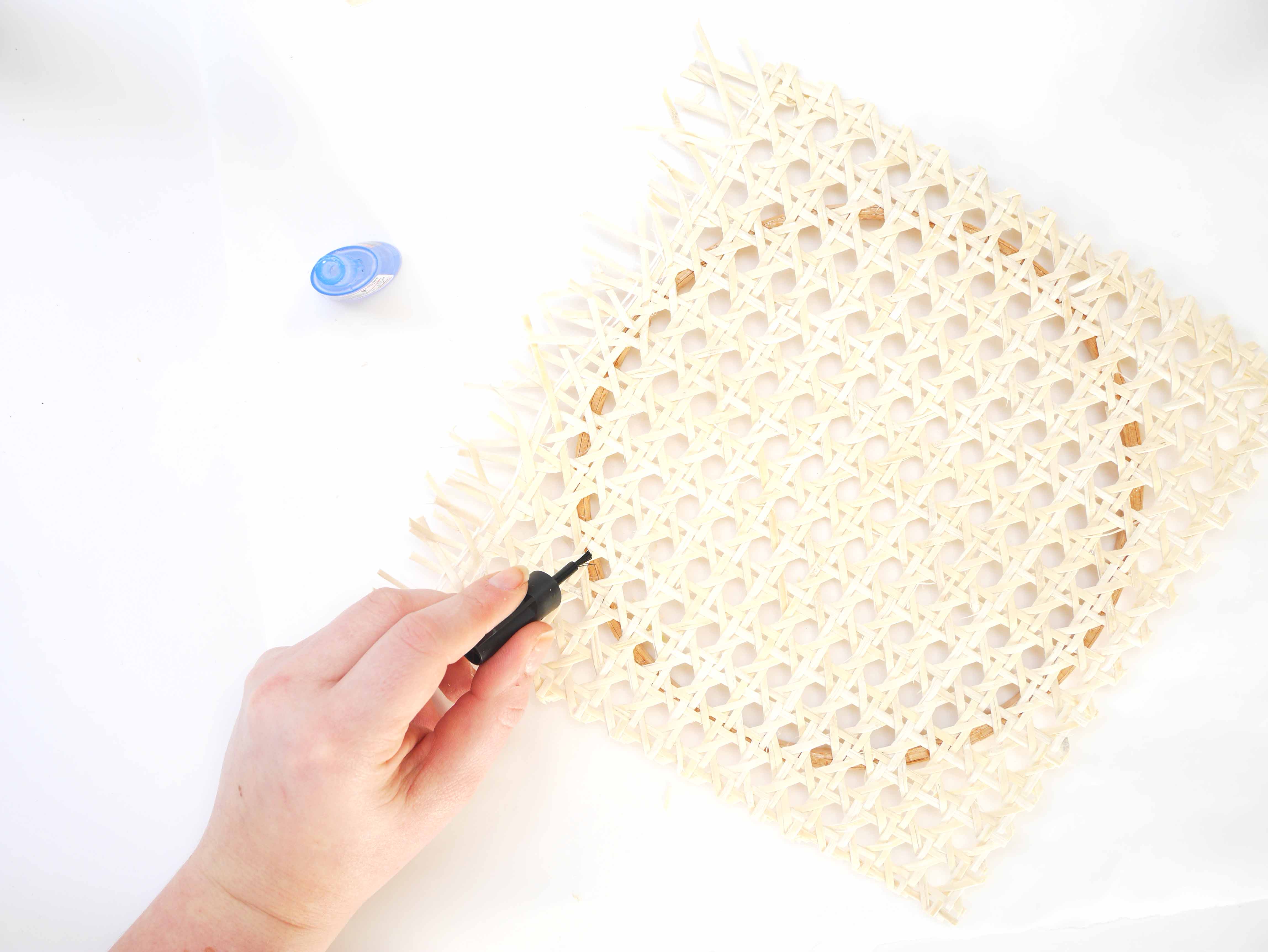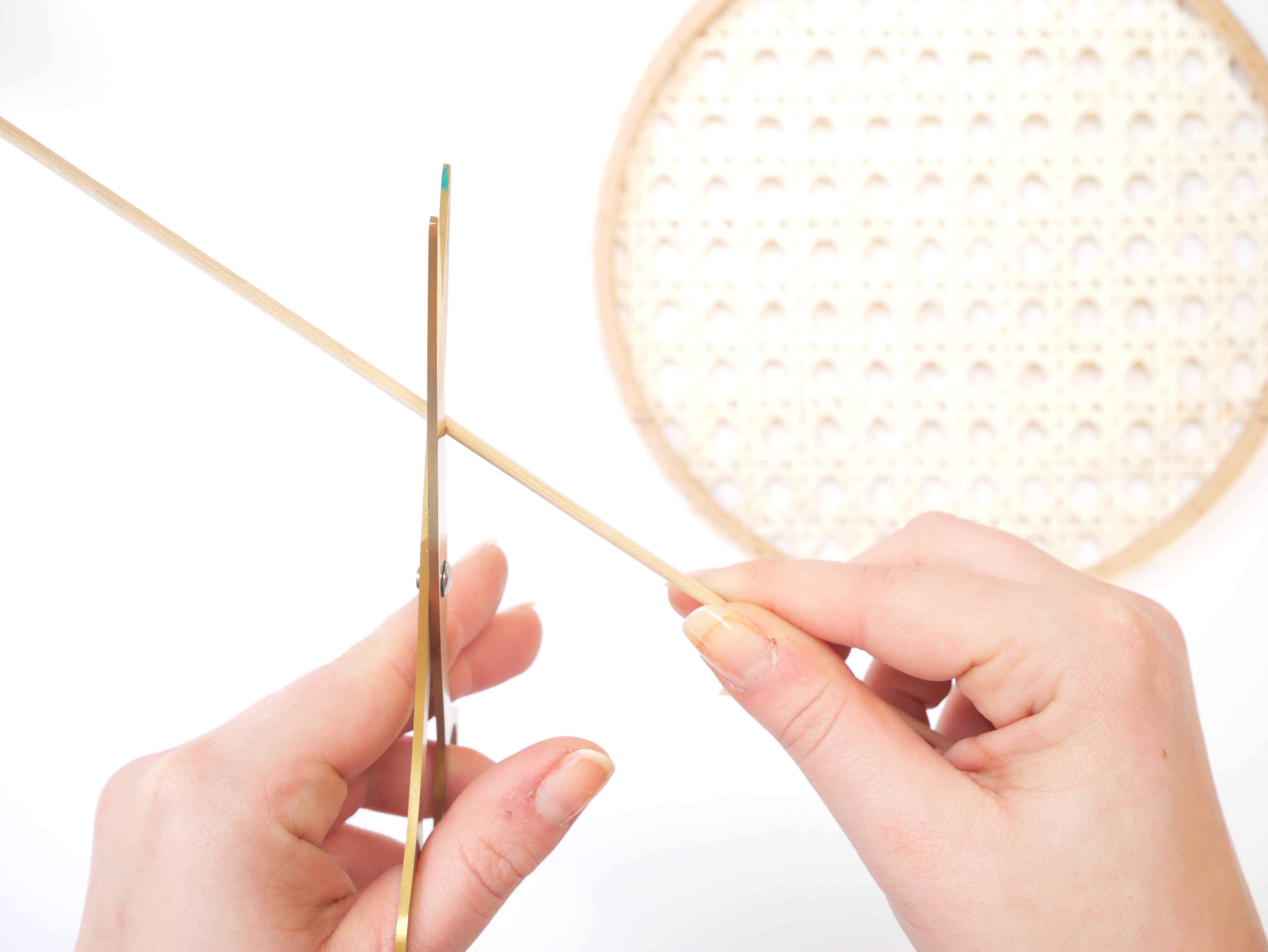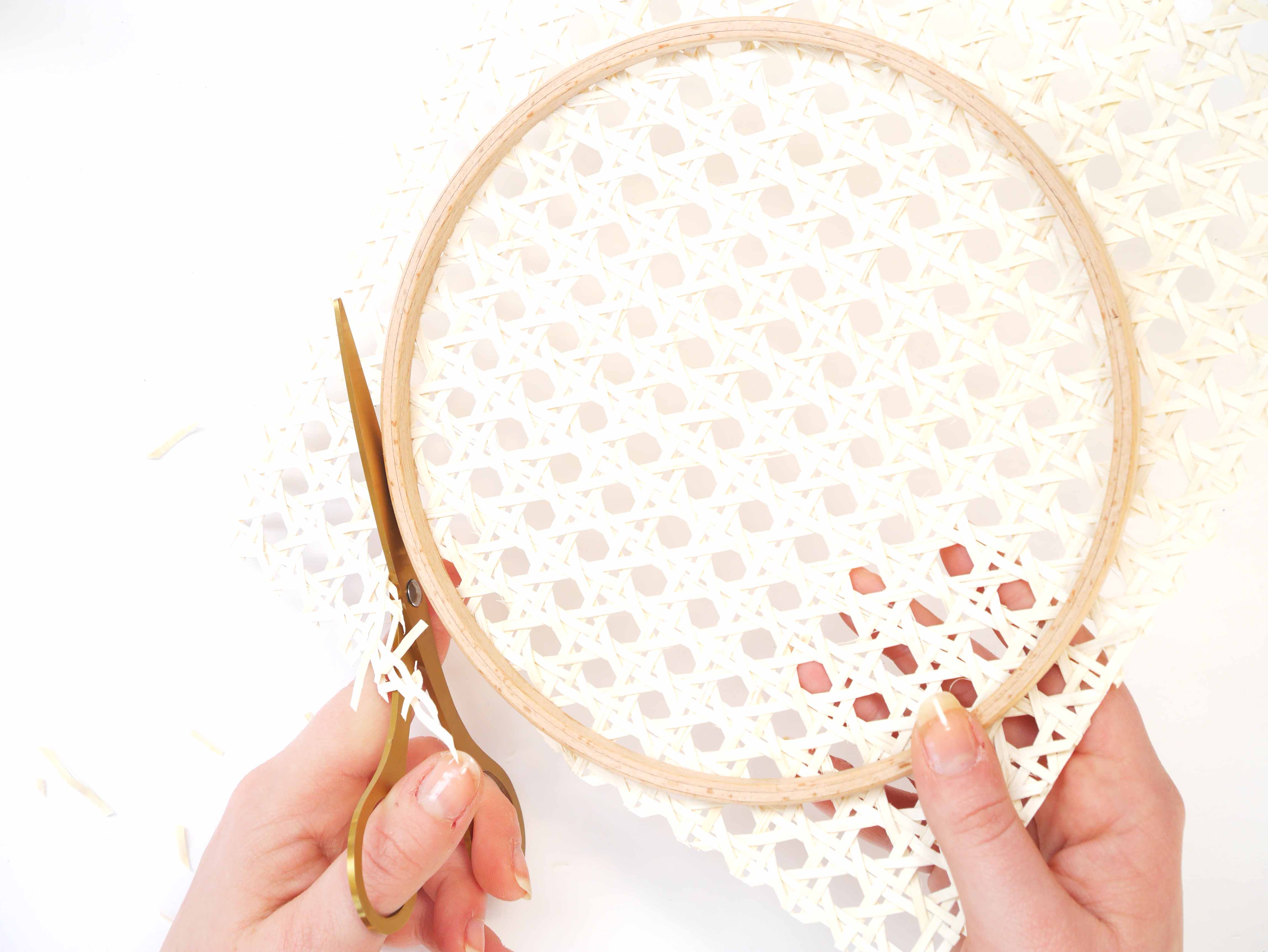 - Découpez tout autour du cercle afin de retirer le surplus de cannage.