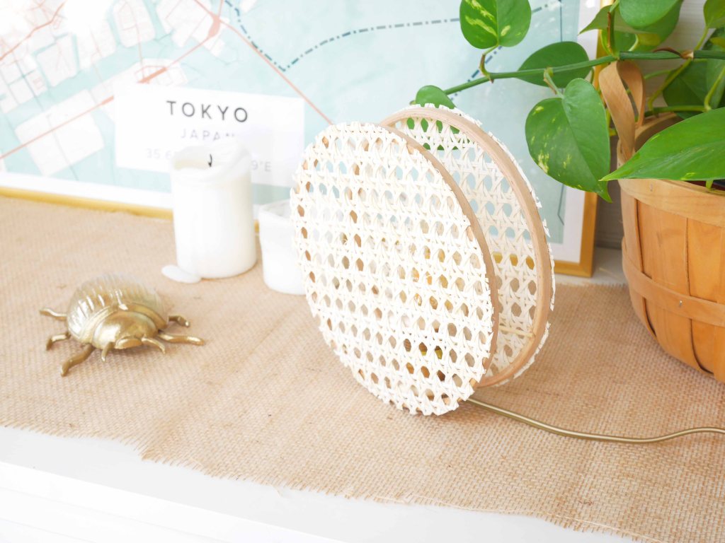 Alors hop, on recycle nos carcasse de tambour à broder pour en faire un luminaire dont l’originalité réside dans ce cannage, offrant de beaux effets d’éclairage ! On aime !