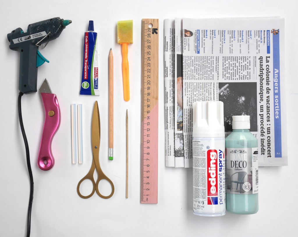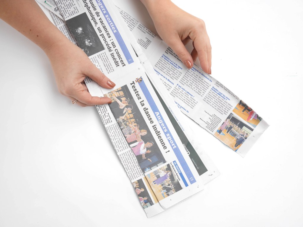 - Réaliser les bandes en coupant les pages du journal sur 7 cm de large.