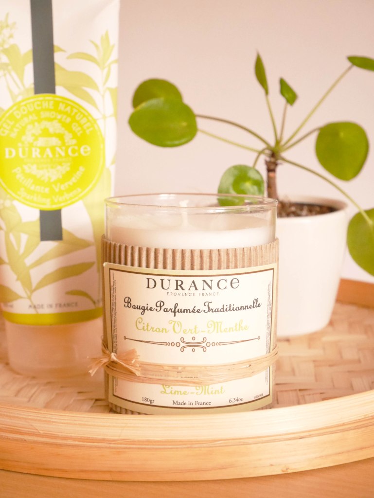 En ce qui concerne les bougies, la marque développe ses parfums exclusifs en collaboration avec ses Maîtres parfumeurs de Grasse. Les bougies sont entièrement fabriquées dans leurs ateliers de Grignan. De la fabrication du mélange à la pose de la mèche, la main de l’Homme est toujours présente. Elles sont ensuite décorées par des mains expertes, qui, dans une succession de gestes rapides et précis, placent l’habillage de la bougie ainsi que son étiquette. La touche finale, la mise en place du ruban de raphia et la confection du noeud, signent de manière unique chaque bougie Durance.