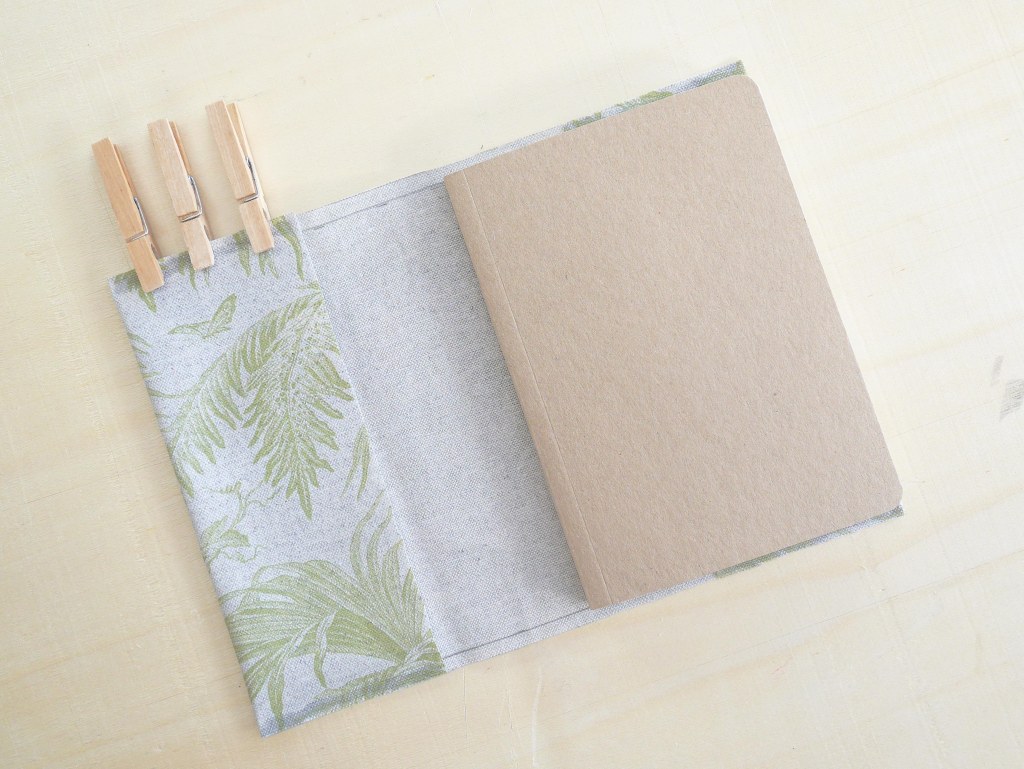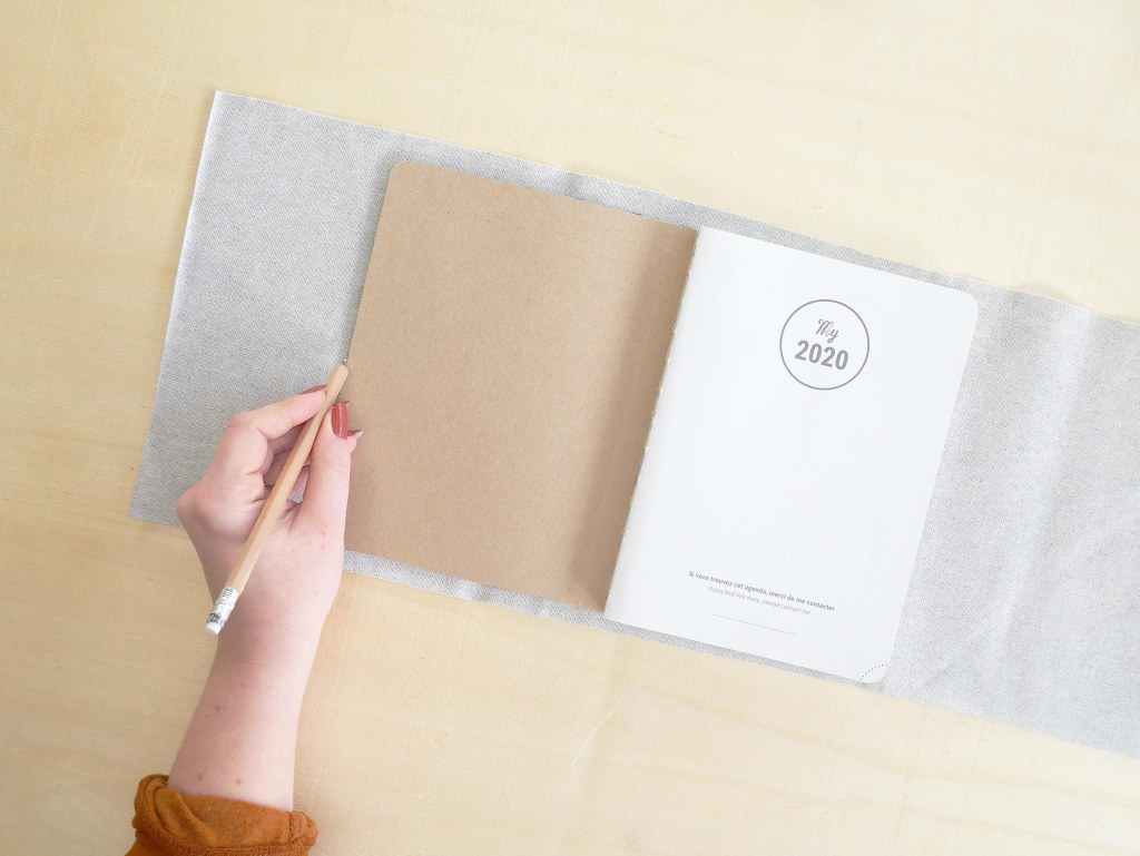 1. Commencez par placer l’agenda ouvert sur le revers du tissus afin d’en marquer les contours.