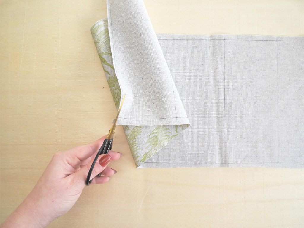 3. Coupez ensuite le morceau de tissu en laissant environ 0,8 cm de marge sur la partie supérieure et inférieure de votre marquage.