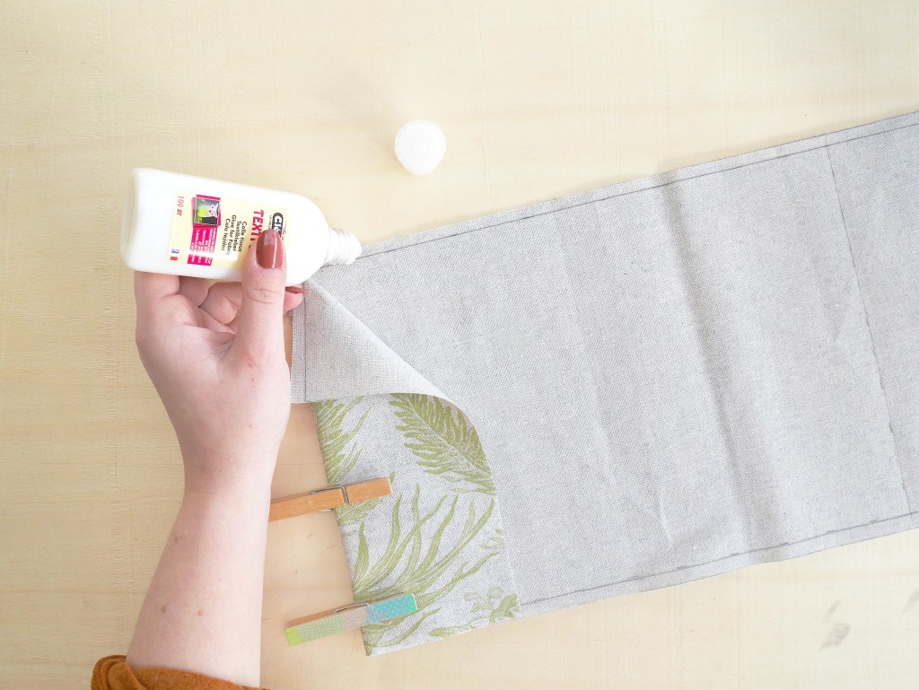 4. Rabattez ensuite les 2 côtés (gauche et droite) et scellez à l’aide de la colle. Vous pouvez ici utiliser des pinces afin de maintenir les rabats en place durant le temps de séchage (environ 5 minutes).