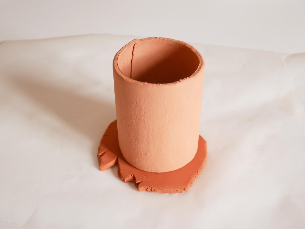 3. Placez ensuite le corps du pot sur cette basse et scellez le contour en appuyant légèrement. Ici vous pouvez humidifier les contours afin de bien faire « collez » les bords entre eux.
