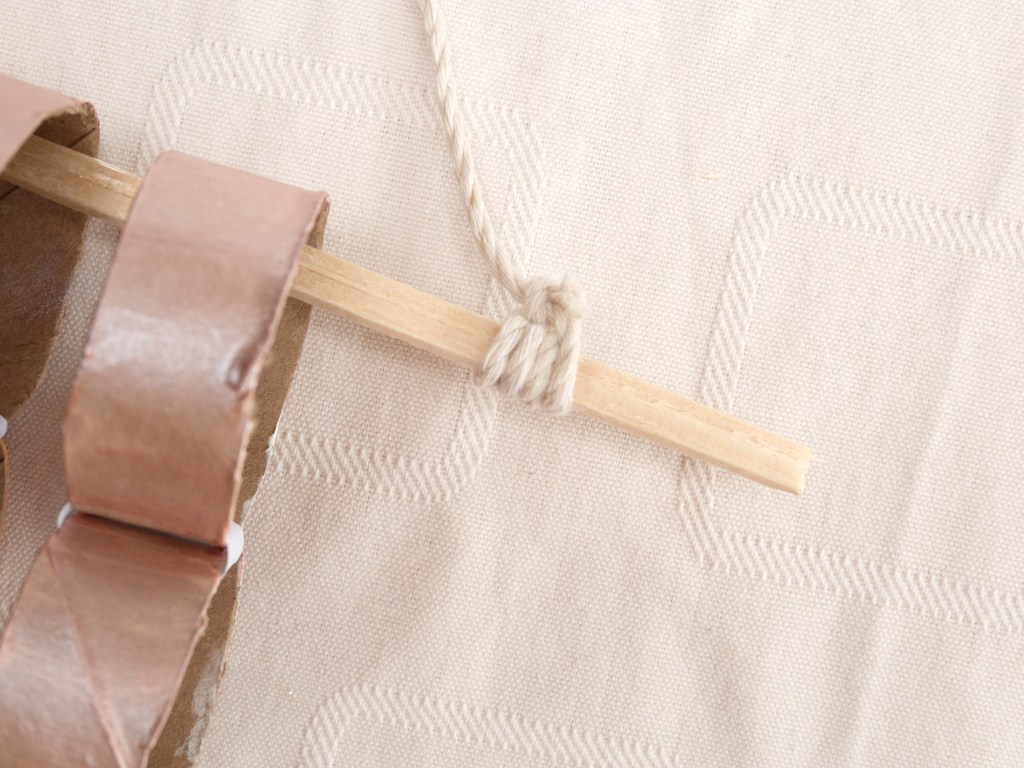 6. Faites passer la baguette en bois dans les premiers anneaux de chacune des guirlandes puis ajoutez une cordelette pour suspendre ensuite votre déco !