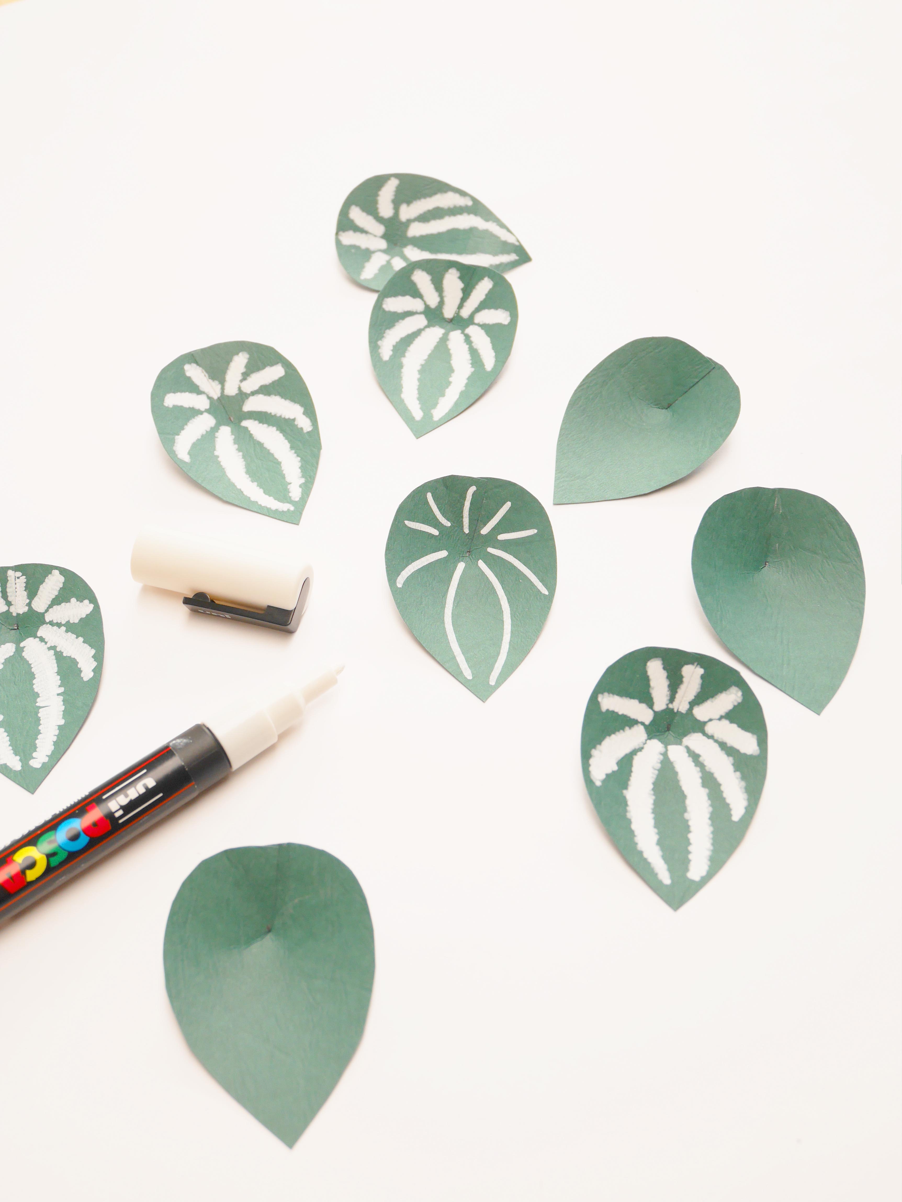3. Avec le marqueur blanc, dessinez les détails sur le recto des feuilles.