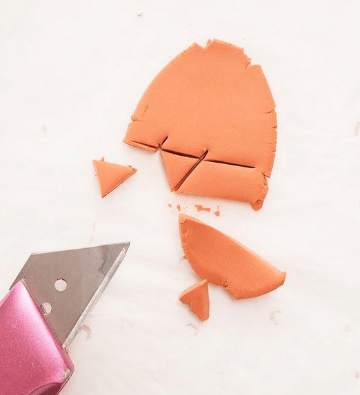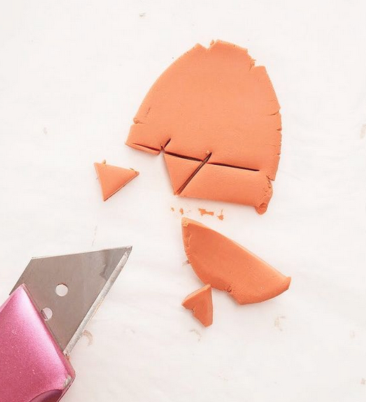 2. Coupez les différentes formes souhaitées à l’aide du cutter. Pour la version « arc-en-ciel », réalisez simplement des petits boudins de pâte puis superposez-les en leur donnant une forme arquée. Enfin, coupez les extrémités afin d’obtenir une finition plus propre.