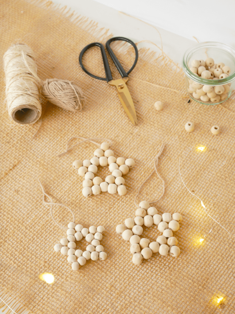 Dans cette version de Noël, se sont des perles de bois que j’ai tissé pour réaliser des suspensions étoiles. Vous verrez, il n’y a rien de compliqué !