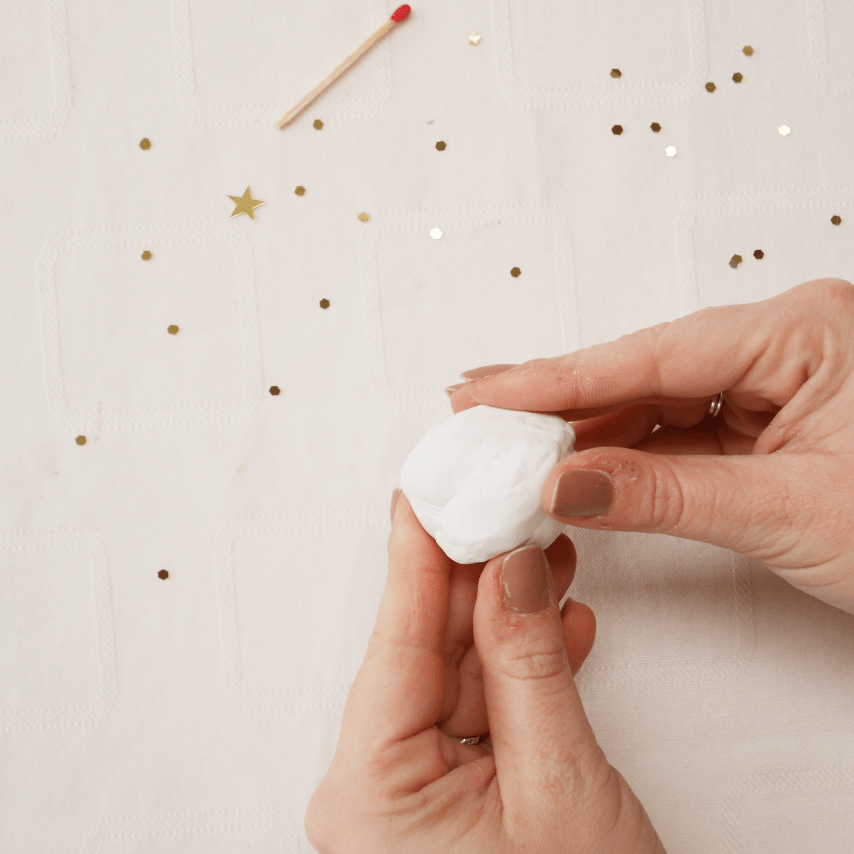 2. Façonnez la maisonnette en donnant à la boule d’argile une forme un peu plus rectangulaire.