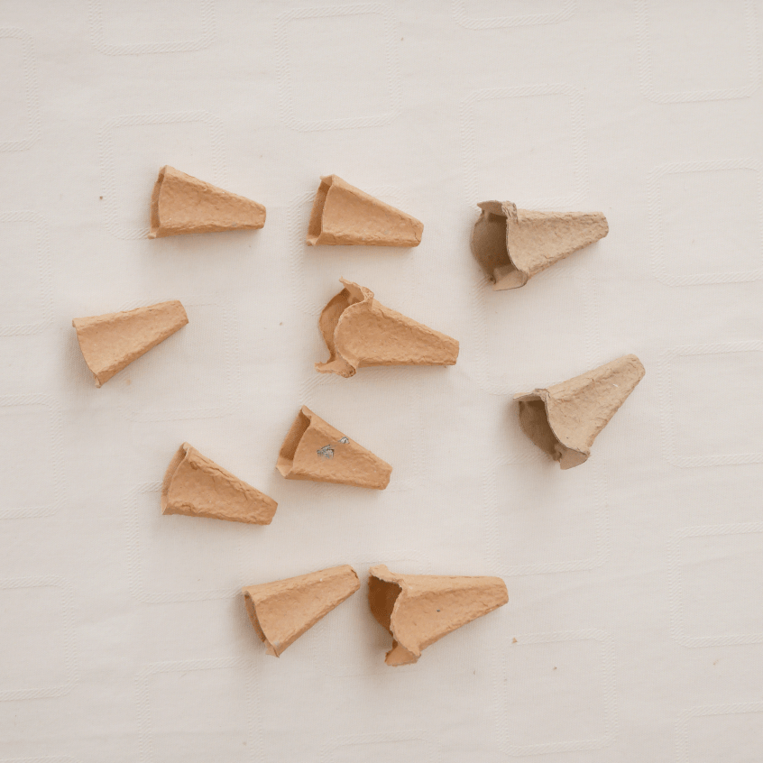 1. Commencez par découper les parties en pointe présentes au centre de la boîte d’œuf. Ici, il vous en faudra 3 par petits sapins.