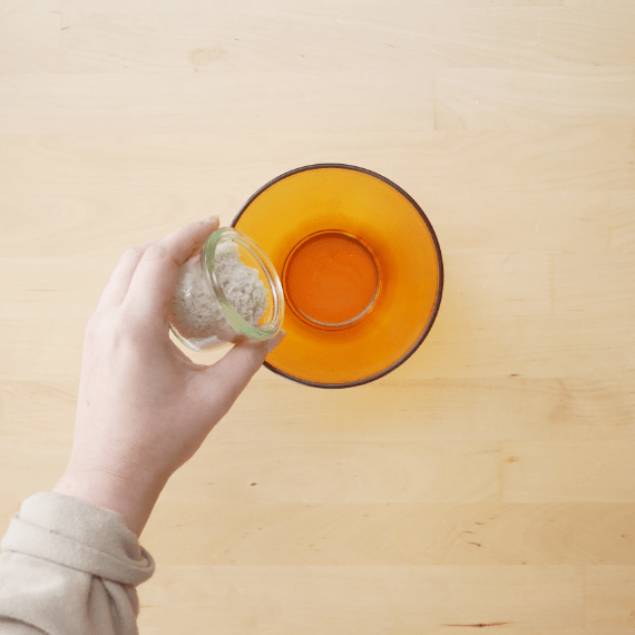 1. Commencez par mélanger l’ensemble des ingrédients et malaxer jusqu’à obtenir une boule homogène.