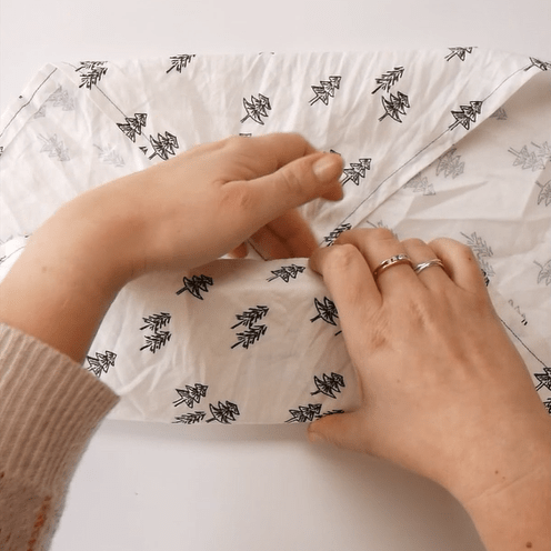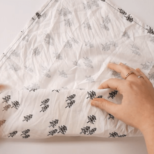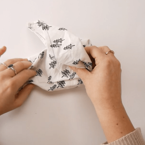 1. Commencez par poser le carré de tissu à plat, devant vous, de sorte qu’une des pointes du carré soit dirigée vers vous.