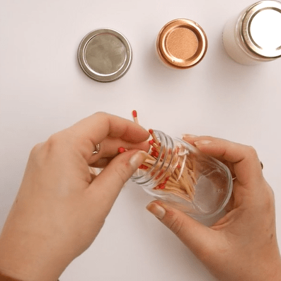 5. Remplissez l’autre contenant d’allumettes et les plaçant bien debout.