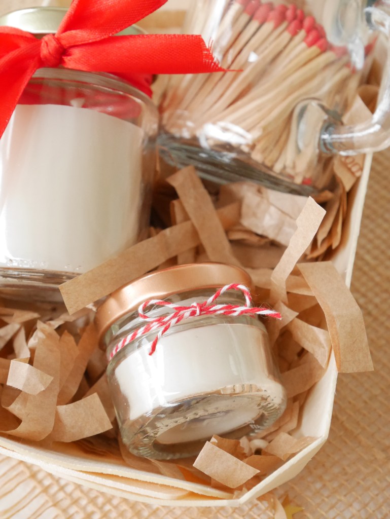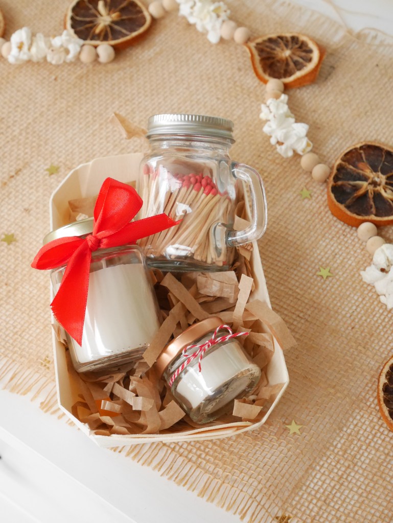 L’idée principale est de donner une nouvelle vie à des objets destinés à être jetés. Alors après avoir mis de côté des petits pots en verre en tout genre, et des fins de bougies usagées, j’ai réalisé un « Kit à bougies » à offrir, parfait pour cette fin d’année !