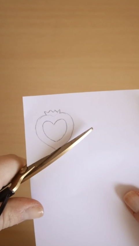 5. Coupez une nouvelle forme de cœur en utilisant la feuille de papier « bois ». Le cœur sera plus petit cette fois.
