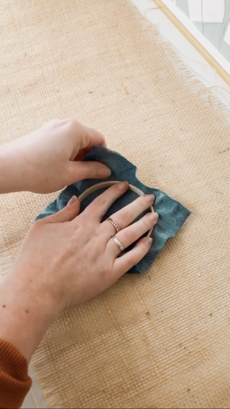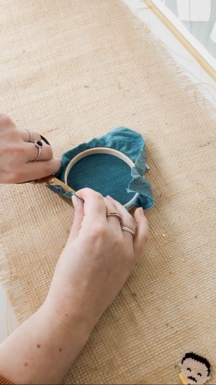 1. Commencez par couper une chute de tissu un peu plus grande que la taille de votre cercle à broder.