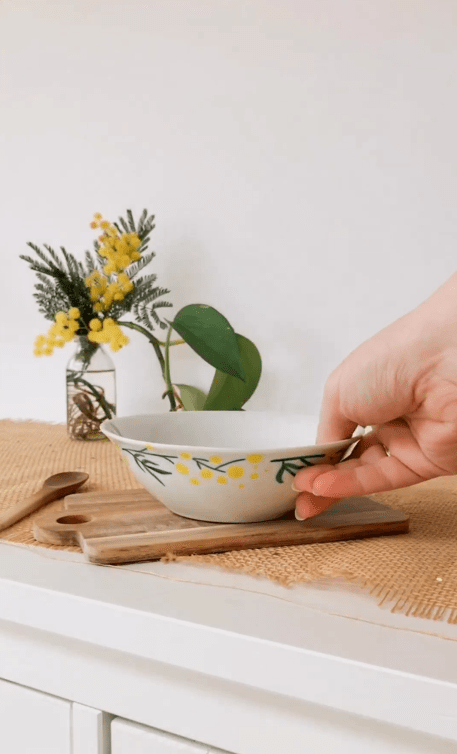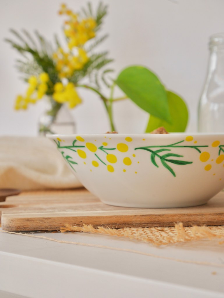 C’est la saison du mimosa ! 💛 Quelle meilleure fleur pour donner un avant-goût de printemps ? Pour l’occasion, j’ai customisé un bol, idéal pour le petit dej !