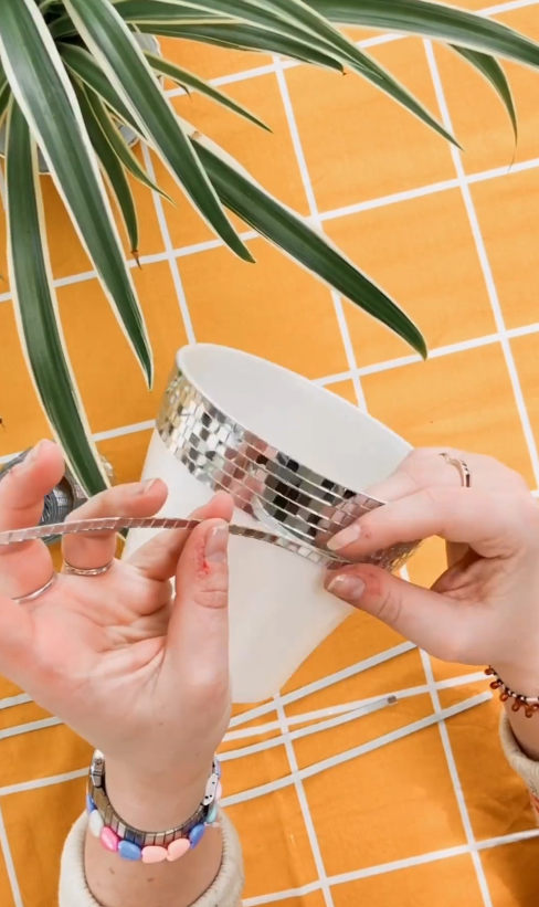 N’est-il pas cute ce cache-pot recyclé en mode disco ? Allez zou, je vous montre comment on fait !