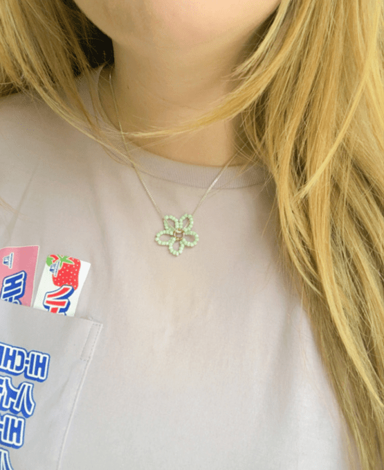 Si vous souhaitez transformer votre fleur en perles en un bijou, glissez une chaîne au centre de la fleur. Vous pouvez ajuster la longueur de la chaîne selon vos préférences. Assurez-vous que la chaîne est solidement attachée à la fleur en perles en la fixant à l’anneau.