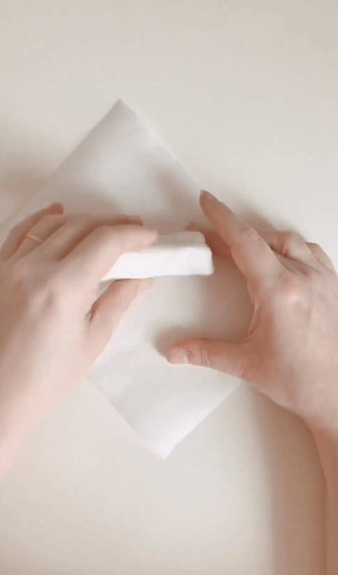 Afin d’obtenir une forme de maison, découpez le toit en triangle à l’aide d’un couteau ou cutter.