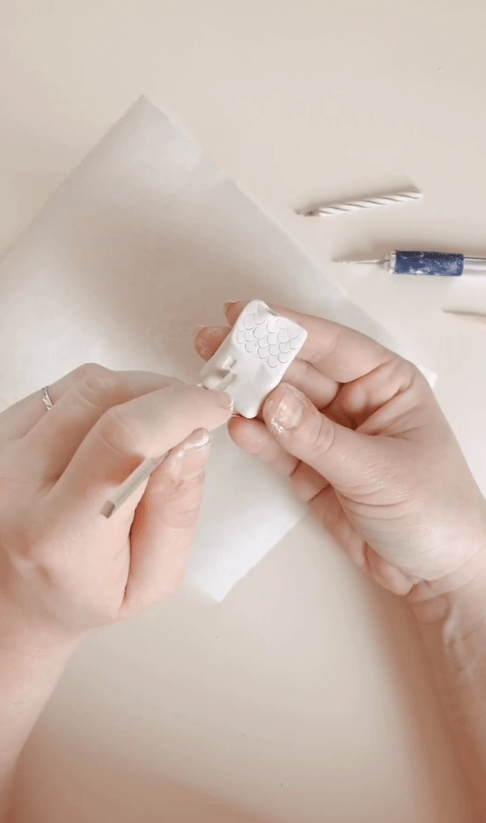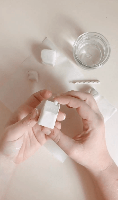 Vous pouvez utiliser du papier abrasif pour lisser les bords de vos mini-maisons et leur donner une finition soignée. Vous pouvez également ajouter des détails supplémentaires à votre goût. Sur le toit de la maison, ajoutez les détails des tuiles en créant des marques l’aide d’un cylindre. Une paille ou autre tube fera l’affaire. Il suffit ensuite de réaliser des encoches régulières sur l’ensemble du toit.