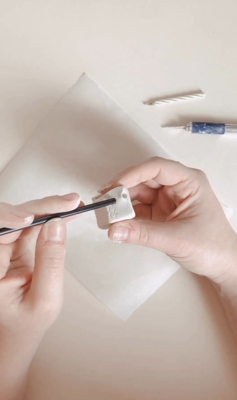 Vous pouvez utiliser du papier abrasif pour lisser les bords de vos mini-maisons et leur donner une finition soignée. Vous pouvez également ajouter des détails supplémentaires à votre goût. Sur le toit de la maison, ajoutez les détails des tuiles en créant des marques l’aide d’un cylindre. Une paille ou autre tube fera l’affaire. Il suffit ensuite de réaliser des encoches régulières sur l’ensemble du toit.