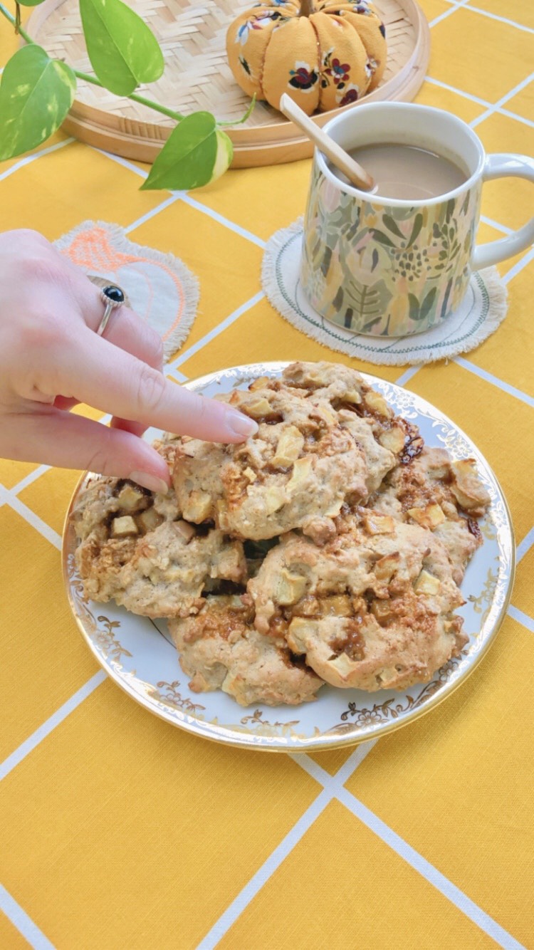 L’automne est là, et avec lui, son cortège de couleurs chatoyantes, de pulls douillets, et bien sûr, de saveurs réconfortantes. Si vous cherchez à réchauffer vos cœurs et vos papilles en cette saison, j’ai LA recette parfaite pour vous : des cookies à la pomme et à la cannelle qui vont vous faire fondre de plaisir !