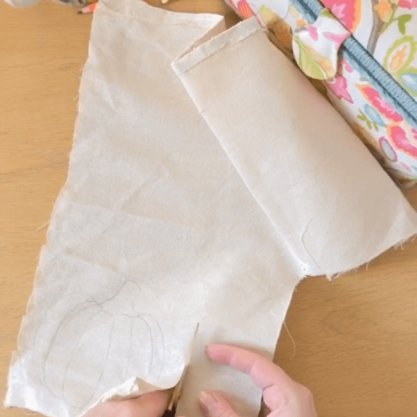 Découpez le tissu autour de la citrouille en laissant plusieurs centimètres de marge. Coupez un second morceau de tissu de la même taille. Placez les deux morceaux de tissu l’un sur l’autre, en veillant à ce que les côtés que vous souhaitez afficher soient à l’intérieur. Épinglez-les ensemble.