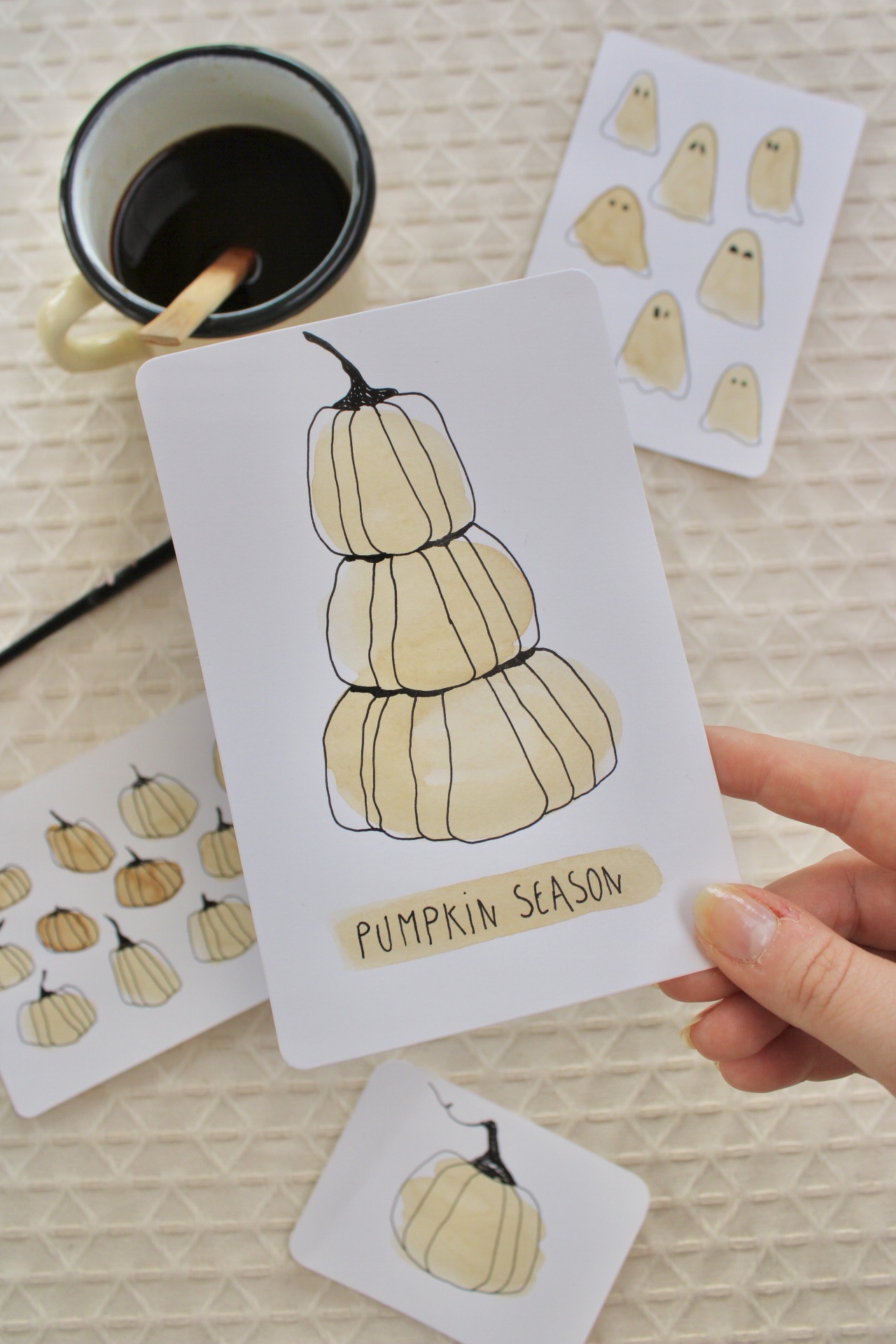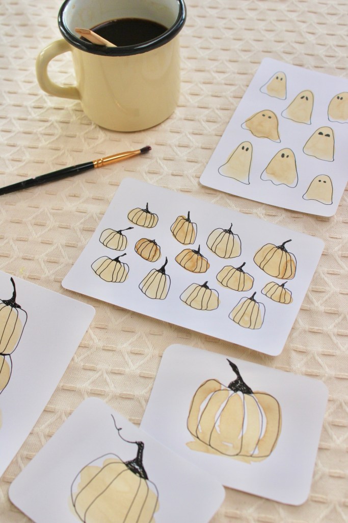 Avant de plonger vos pinceaux dans le café, prenez un moment pour vous imprégner de l’ambiance automnale. Pensez aux couleurs chaudes, aux feuilles qui tombent, et à l’atmosphère chaleureuse de la saison. Laissez cette inspiration guider votre création. Pour ma part, Halloween approchant, il ne m’a pas fallut très longtemps pour trouver l’inspiration…