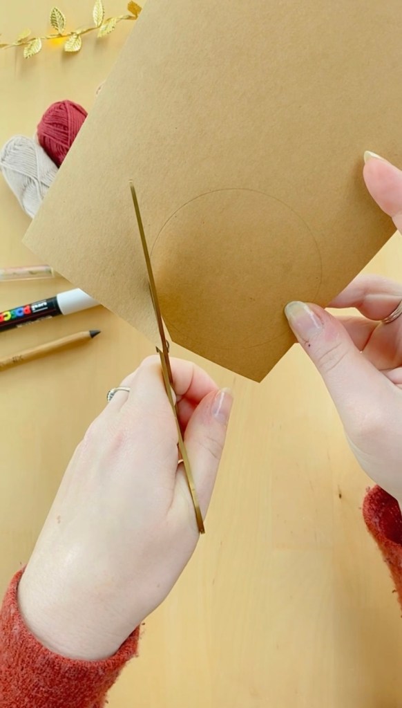 1. Commencez par coupez des cercles d’environ 6 cm de diamètre dans le papier cartonné. Coupez-en autant que vous souhaitez faire de suspensions.