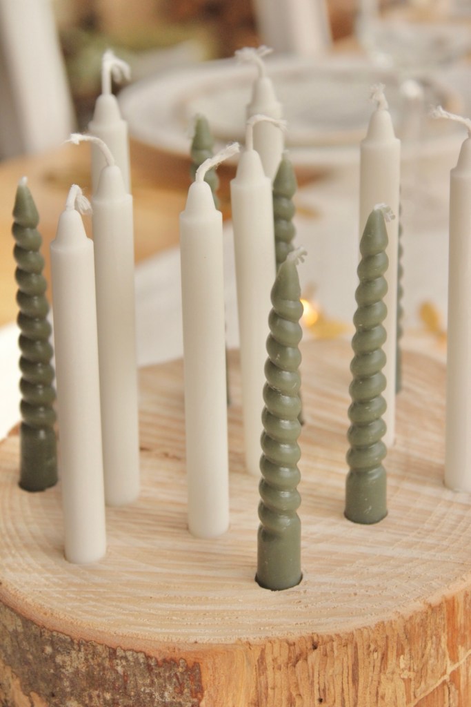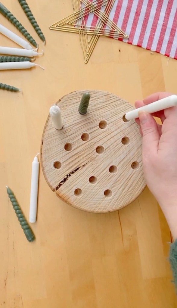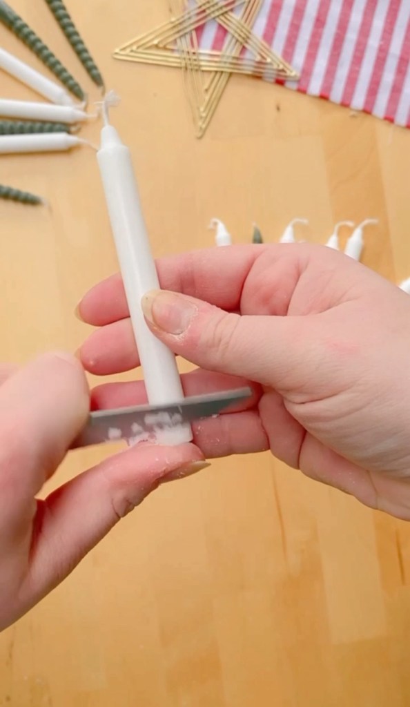 5. Affinez légèrement la base de vos bougies puis insérez-les dans les trous.